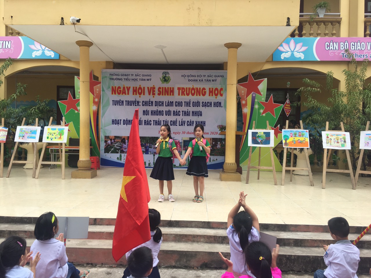 Mở đầu chương trình ngày hội là các tiết mục văn nghệ sôi động với chủ đề môi trường như dân vũ “Những chiến binh xanh”, “Rửa tay” do câu lạc bộ “Họa Mi” và học sinh nhà trường biểu diễn.