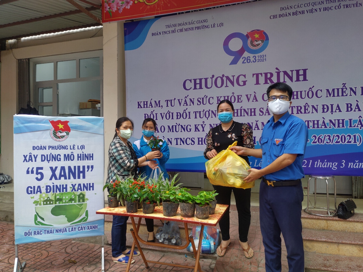 Thiết thực tổ chức các hoạt động chào mừng kỷ niệm 90 năm ngày thành lập Đoàn TNCS Hồ Chí Minh (26/3/1931 – 26/3/2021).Thực hiện sự chỉ đạo của BTV Thành đoàn, Ủy Ban Hội LHTN Việt Nam thành phố Bắc Giang, được sự nhất trí của Đảng ủy phường, sáng ngày 21/3/2021, Đoàn thanh niên phường Lê Lợi phối hợp với Chi đoàn bệnh viện Y học cổ truyền tỉnh tổ chức Chương trình Khám,tư vấn sức khỏe, cấp phát thuốc miễn phí đối với các đối tượng người có hoàn cảnh khó khăn, gia đình chính sách đang cư trú tại phường.