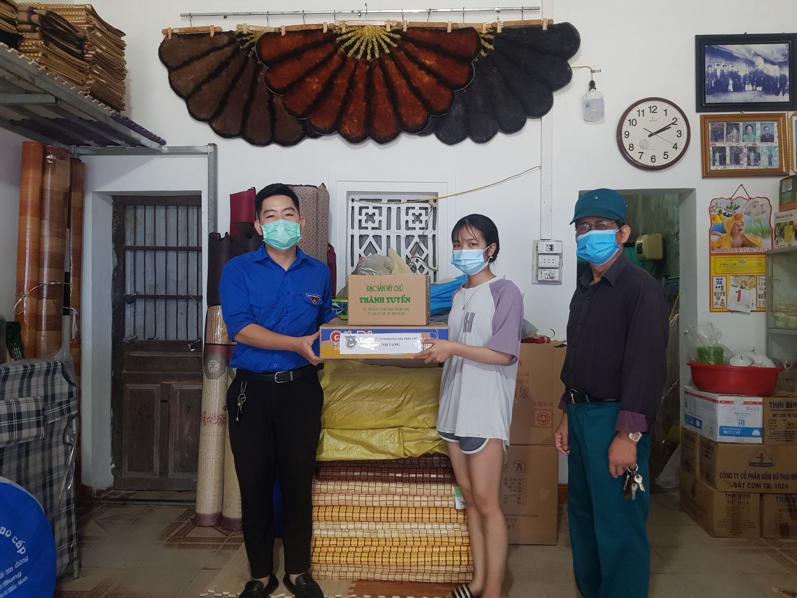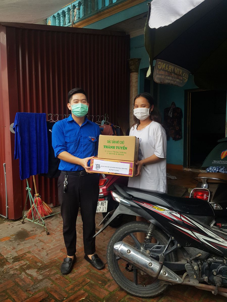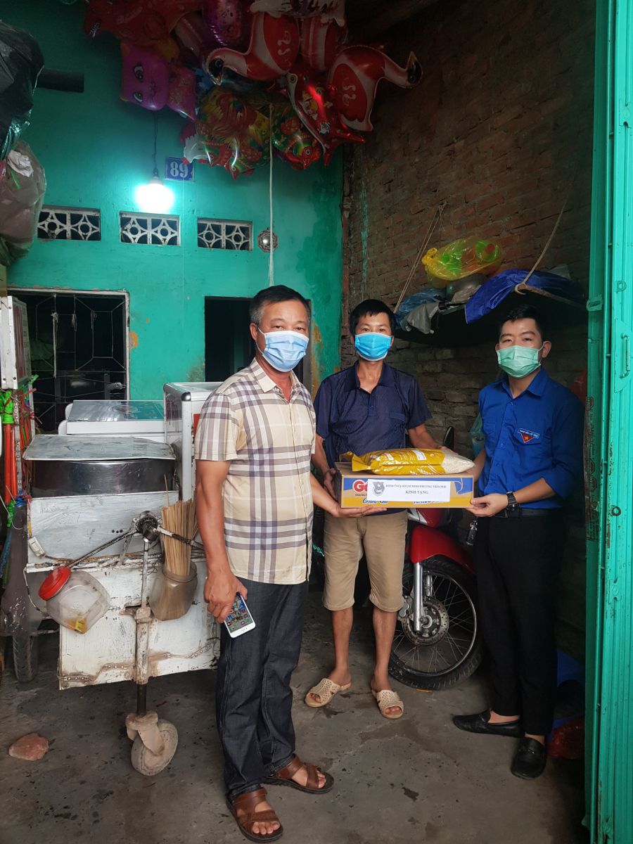 Song song với công tác phòng, chống dịch Covid-19, Tuổi trẻ Trần Phú tổ chức đến nhà thăm, tặng nhu yếu phẩm cho 06 gia đình hoàn cảnh khó khăn có đoàn viên. thanh niên đang chịu ảnh hưởng của dịch Covid-19 tại các tổ dân phố trên trên địa bàn . Mỗi phần quà gồm các lương thực, thực phẩm thiết yếu như, mỳ gói, gạo, cháo ăn liền, mỳ gạo cùng các vật dụng cần thiết như khẩu trang, nước sát khuẩn…