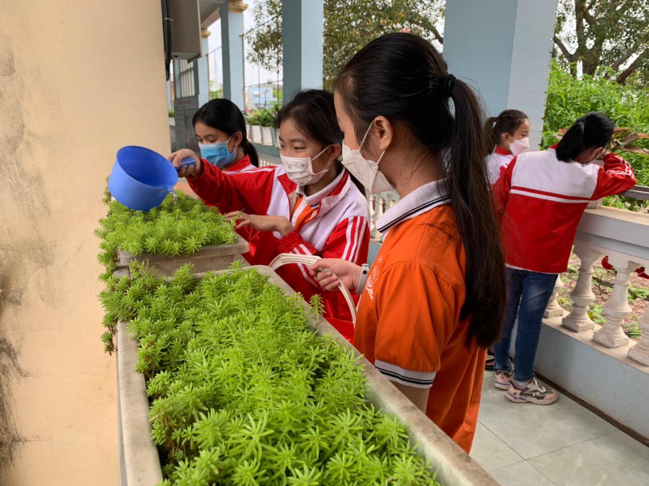 Công trình thanh niên bao gồm trồng mới gần 100 chậu cây hoa, cây cảnh các loại, dễ trồng, phù hợp với môi trường sư phạm, tạo cảnh quan xanh - đẹp, tạo sự thân thiện giữa thầy cô giáo và học sinh.