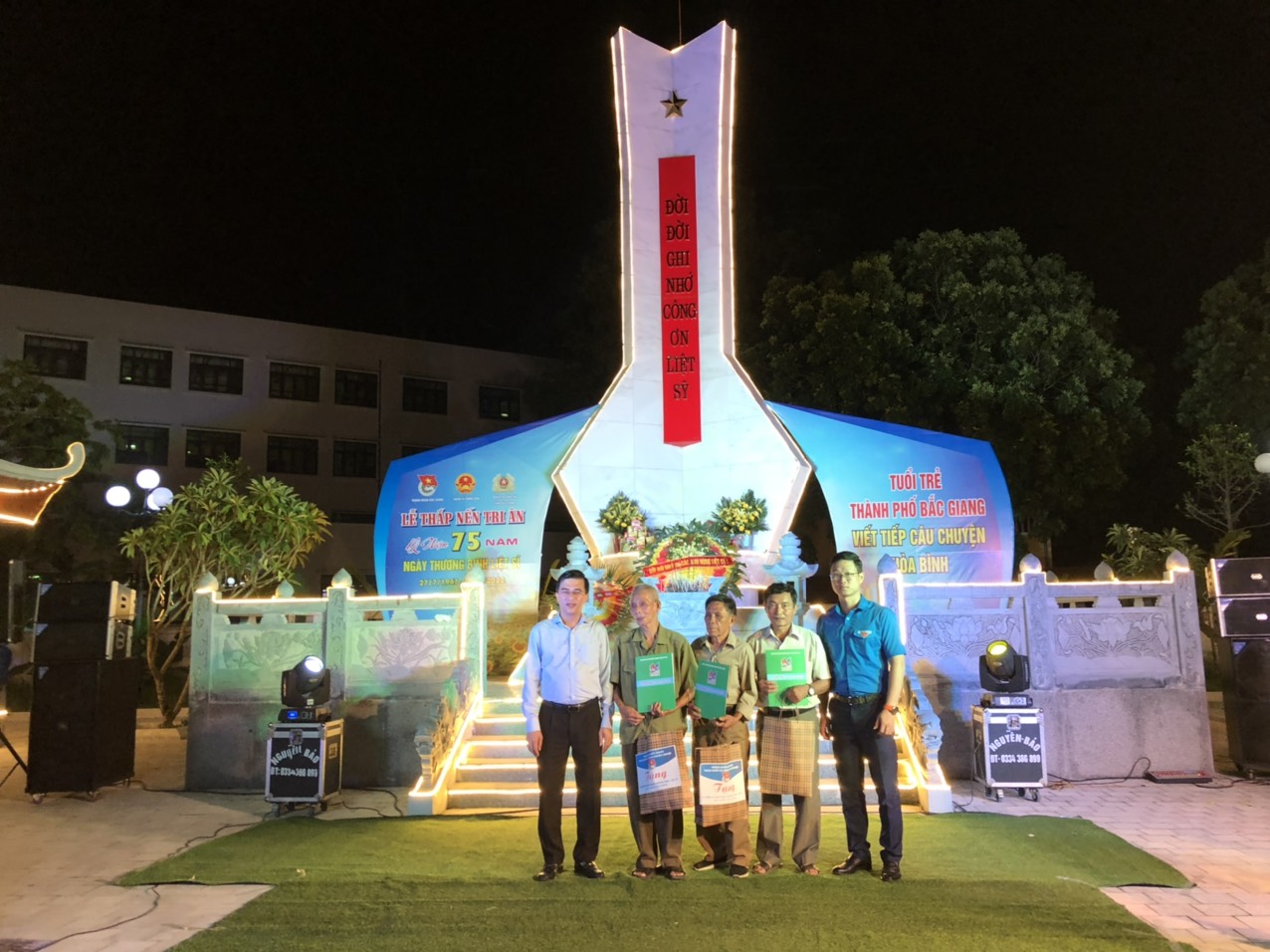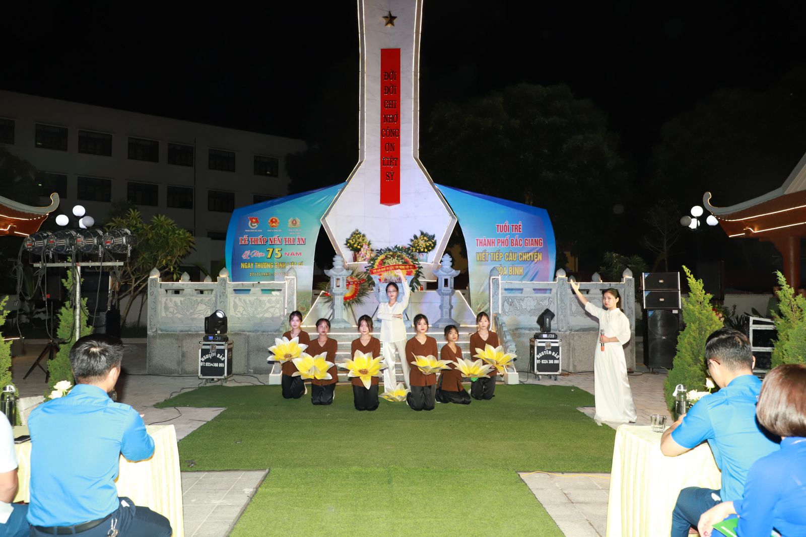 Tại buổi Lễ, đồng chí Nguyễn Thị Liên - Phó Bí thư Thành đoàn đã thay mặt tuổi trẻ thành phố Bắc Giang chia sẻ và cảm ơn những công lao, hy sinh xương máu của các bậc cha, anh, đem lại cuộc sống hòa bình cho thế hệ trẻ ngày nay. Tuổi trẻ thành phố xin thành kính dân lên những nén tâm nhang, lòng thành kính biết ơn với những hy sinh cao đẹp của các anh hùng liệt sĩ, các mẹ Việt Nam anh hùng, để thế hệ hôm nay được sống hòa bình, tự do, hạnh phúc. Bằng tất cả tấm lòng thành kính và biết ơn vô hạn, tuổi trẻ thành phố hôm nay xin nguyện giữ gìn và kế thừa xứng đáng sự nghiệp cách mạng vẻ vang của dân tộc, phát huy trí tuệ, tinh thần xung kích, tình nguyện, xây dựng thành phố Bắc Giang và đất nước giàu đẹp, văn minh, xứng đáng với những hy sinh to lớn của các thể hệ cha ông đi trước". Cũng tại buổi lễ CLB tuyên truyền các ca khúc cách mạng của tuổi trẻ thành phố đã tuyên truyền, biểu diễn 05 tiết mục, ca khúc cách mạng với chủ đề "Tuổi trẻ thành phố viết tiếp câu chuyện hòa bình".