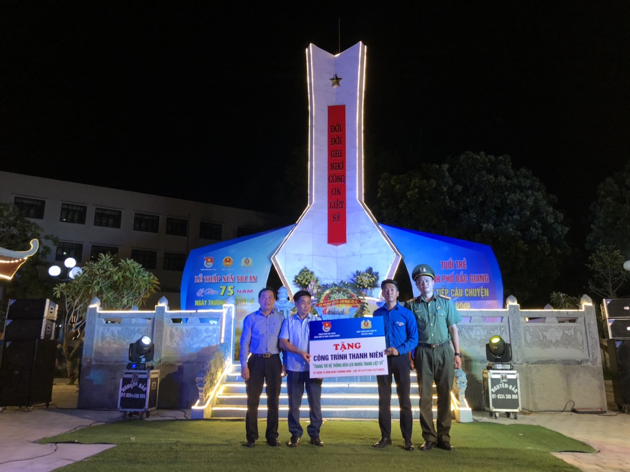 Nhân dịp này, Thành đoàn đã trao tặng 10 suất quà các gia đình chính sách, thương binh, gia đình có công với cách mạng, gia đình liệt sĩ trên địa bàn xã; đồng thời trao tặng công trình thanh niên trang trí hệ thống đèn led nghĩa trang Đồng Sơn trị giá gần 30 triệu đồng. Công trình do đoàn viên khối cơ quan doanh nghiệp thành phố và đoàn thanh niên công an tỉnh đóng góp trao tặng cho Đảng ủy - UBND xã Đồng Sơn.