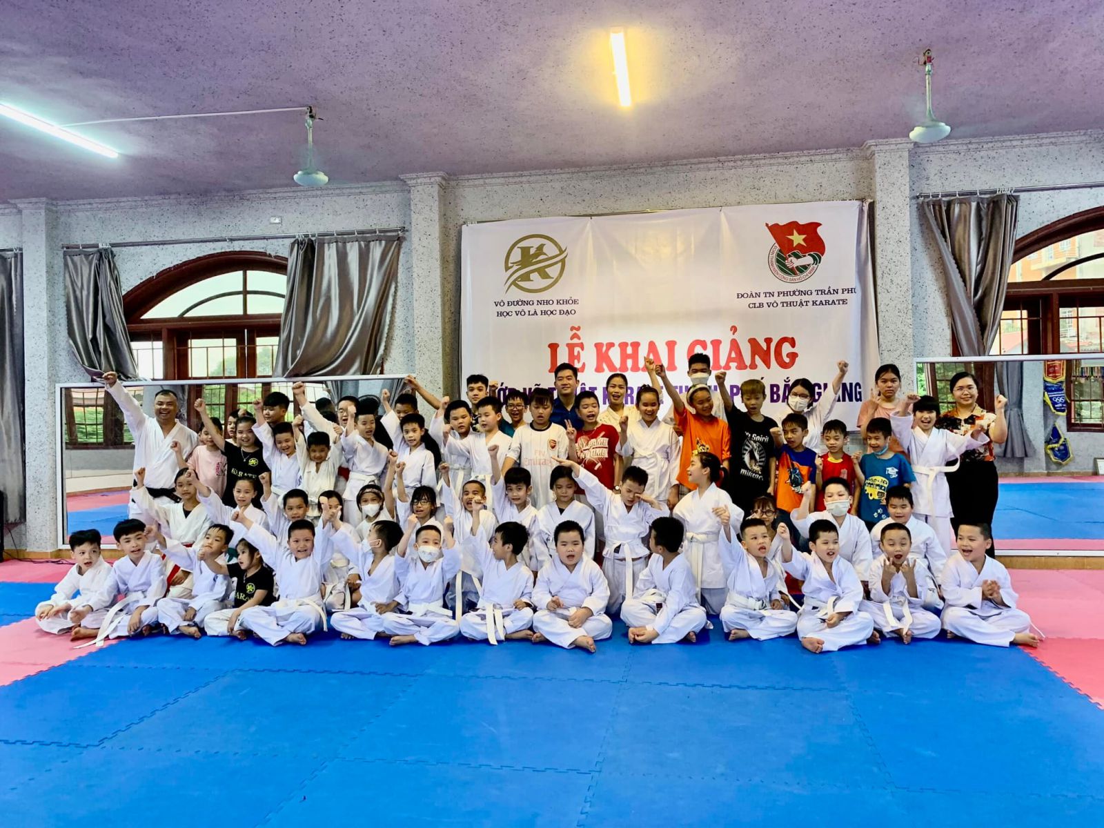 Ngay sau buổi khai mạc, các em đã được thầy giáo hướng dẫn, tập luyện các kỹ thuật căn bản như kỹ thuật tay, chân, quyền và đối luyện của môn võ Karate.