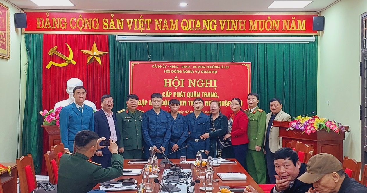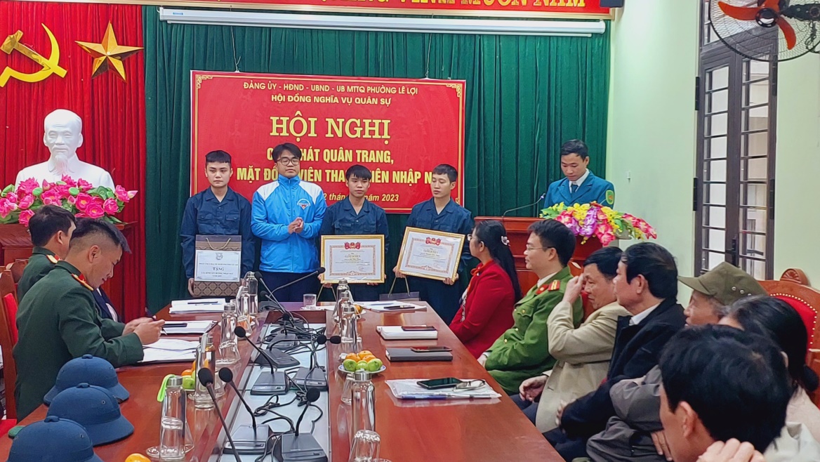Ngày 02/02/2023, Hội Đồng nghĩa vụ Quân sự phường Lê Lợi tổ chức gặp mặt và cấp phát quân tư trang cho 04 thanh niên chuẩn bị lên đường nhập ngũ. Tới dự có đồng chí Thượng tá Đỗ Hồng Kiên - Ủy viên Ban Thường vụ Thành ủy, Chỉ huy trưởng Ban chỉ huy Quân sự thành phố. Tại buổi gặp mặt, các tân binh được phát quần áo, dây lưng, mũ và các vật dụng cần thiết khác.