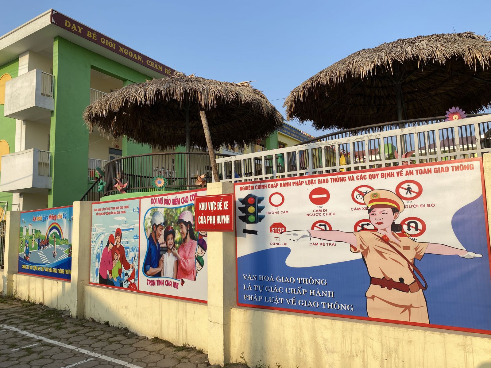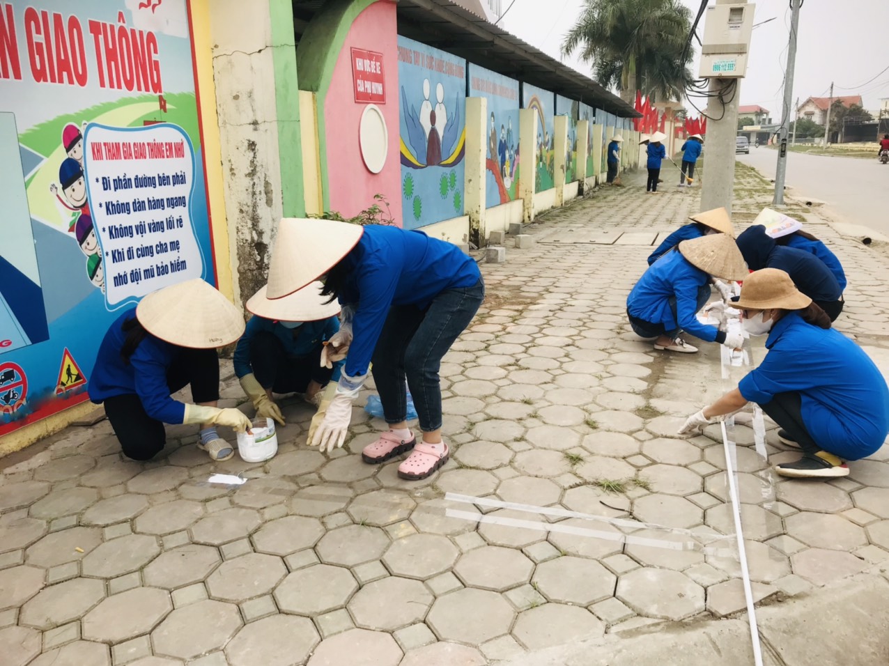 Từ ngày 24/2/2023 – 26/2/2023 Đoàn thanh niên xã đã thực hiện kẻ vạch sơn quy định vị trí để xe cho phụ huynh khi đưa đón các em học sinh đến trường, treo các biển tuyên truyền an toàn giao thông tại cổng trường.