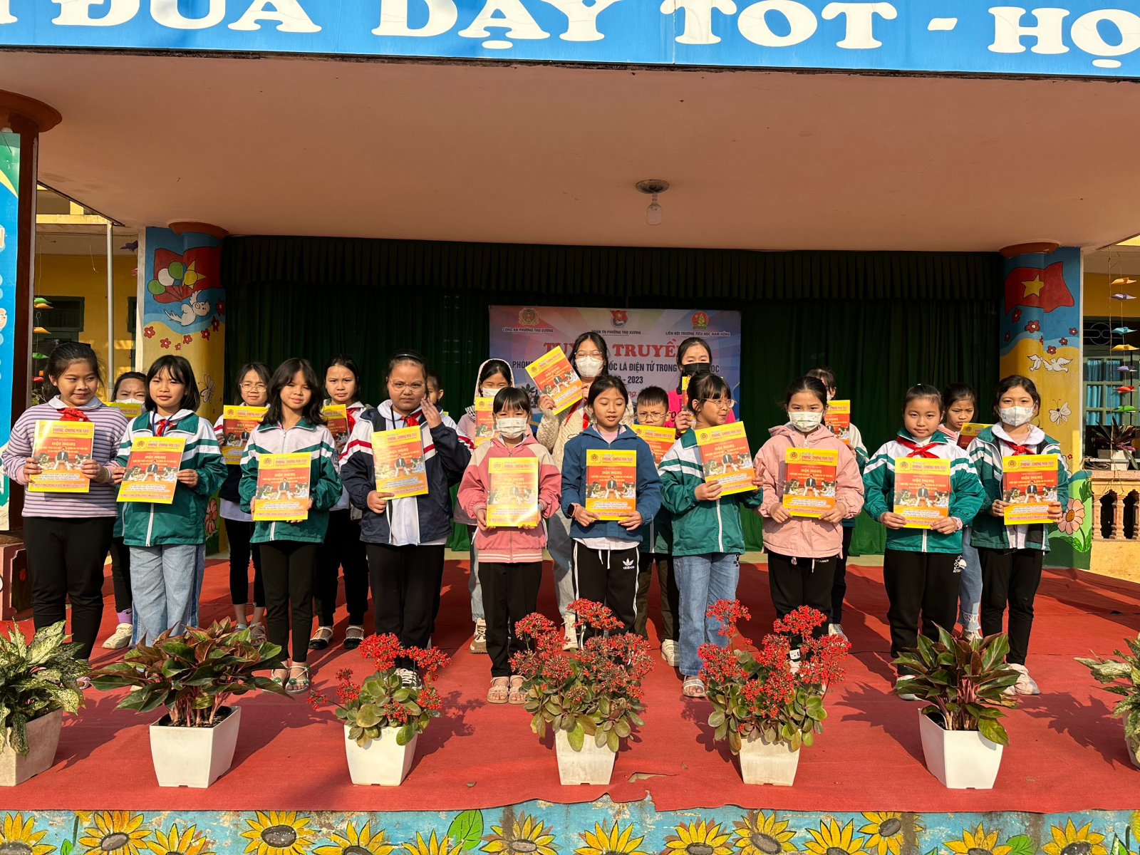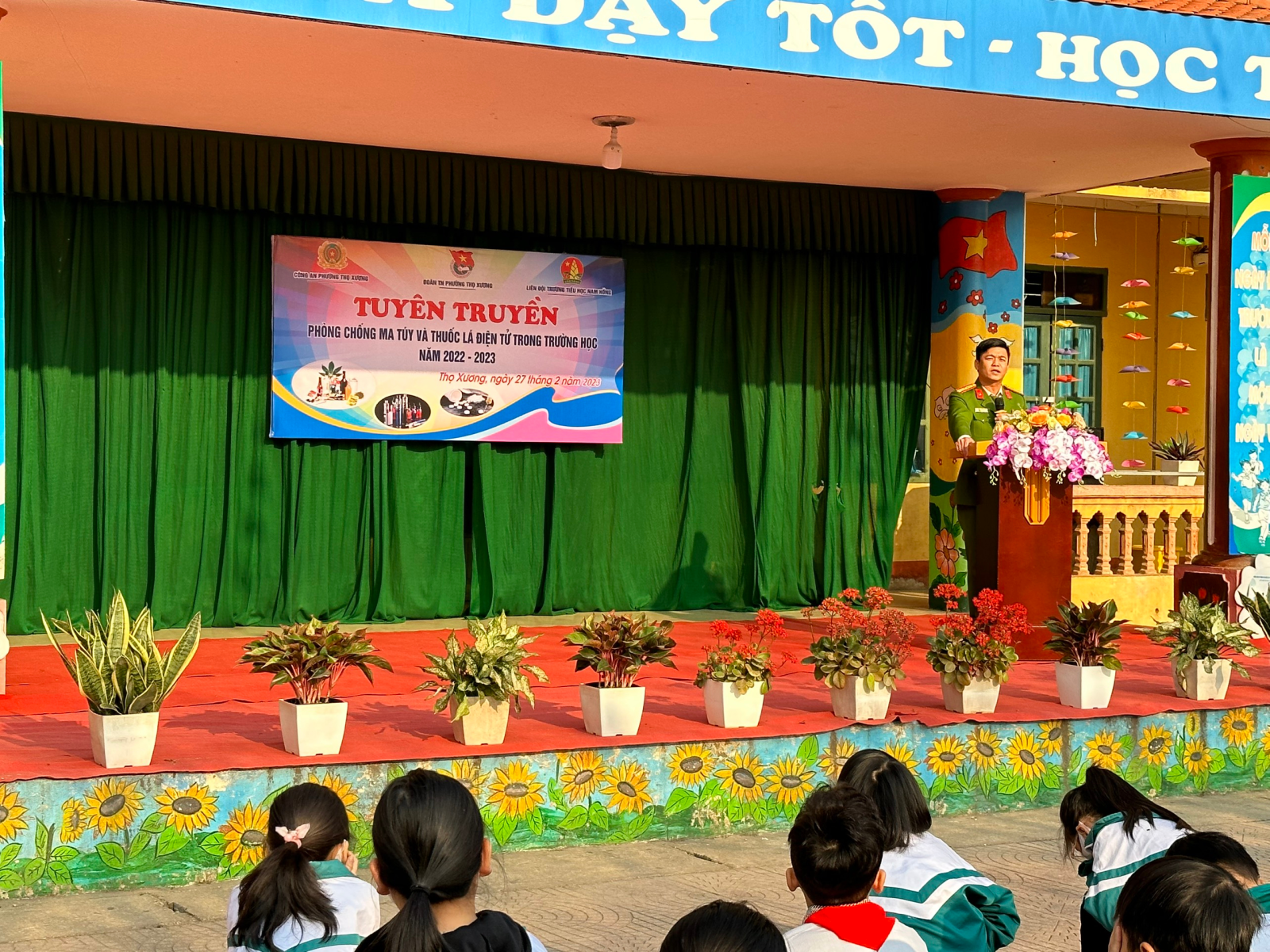 Cuối buổi tuyên truyền, Cô Nguyễn Thị Kim Phúc GV Tổng phụ trách Đội lên nói lời cảm ơn báo cáo viên đã giúp các em học sinh nâng cao kiến thức, hiểu biết về tác hại, hệ lụy của ma túy và thuốc lá điện tử đối với bản thân, gia đình và xã hội. Từ đó, trang bị cho các em nhiều kiến thức bổ ích trong phòng chống tệ nạn ma tuý và thuốc lá điện tử, luôn“ nói không với ma túy”,”nói không với thuốc lá điện tử”. Kêu gọi sự vào cuộc của gia đình, trách nhiệm của mỗi cán bộ, giáo viên trong việc nắm bắt tâm lý, kịp thời phát hiện, hỗ trợ, ngăn chặn hành vi hút thuốc lá, thuốc lá điện tử của học sinh. Qua đó, kịp thời tự giác đấu tranh trong phòng, chống tệ nạn ma túy, tội phạm ma túy, thuốc lá điện tử… góp phần thực hiện tốt mục tiêu giáo dục đào tạo toàn diện, tạo mọi điều kiện cho các em học sinh được phát triển toàn diện về thể chất, tinh thần và kỹ năng. Cuối buổi tuyên truyền, các em học sinh được nhận tài liệu về phòng, chống ma túy.
