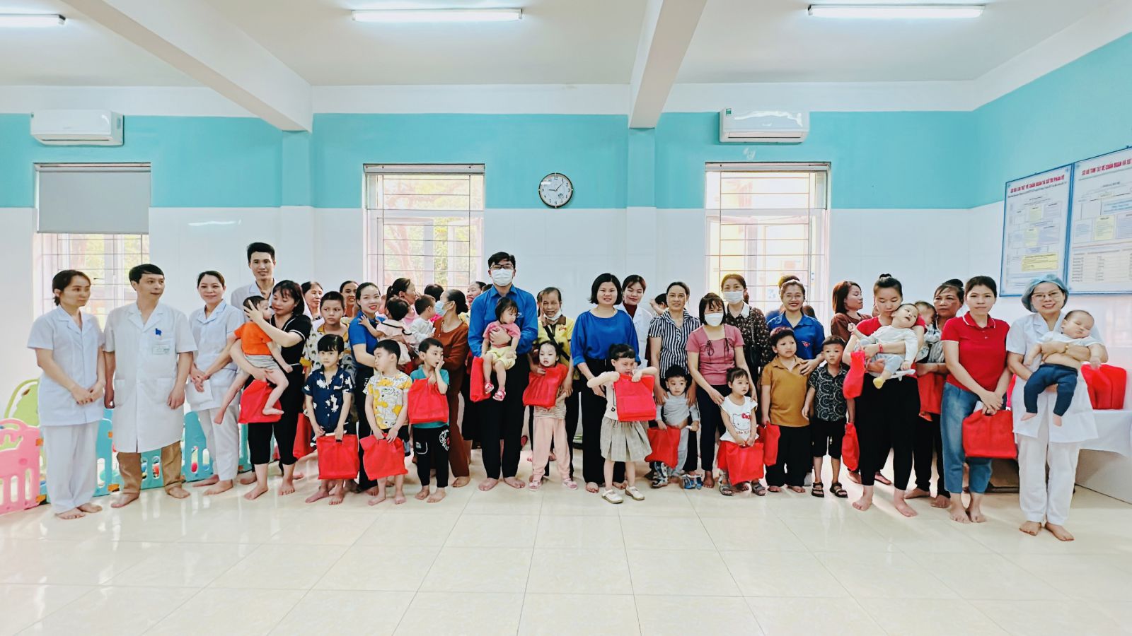 Dự buổi lễ có các đồng chí: Nguyễn Thị Thời – Giám đốc bệnh viện phục hồi chức năng tỉnh Bắc Giang; Lê Anh Dũng – Uỷ viên Ban Thường vụ Thành đoàn, Bí thư Đoàn khối doanh nghiệp thành phố; Phạm Thị Nga – Bí thư chi đoàn bệnh viện phục hồi chức năng tỉnh, cùng các đồng chí cán bộ, y bác sĩ bệnh viện, đoàn viên thanh niên hai đơn vị cùng 36 em nhỏ có hoàn cảnh khó khăn đang điều trị tại bệnh viện.