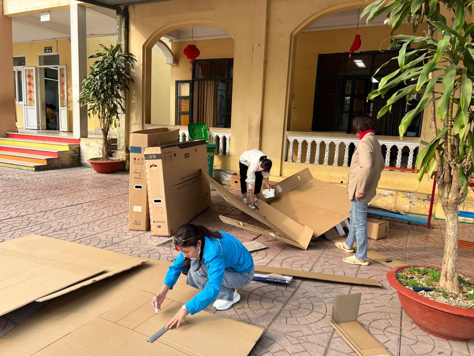 Bước đầu, sân chơi được thiết kế với các khu vực chơi nhảy dây, ô ăn quan, đá cầu, nhảy ô... Nguồn kinh phí thực hiện được xã hội hóa và do các đoàn viên chi đoàn tận dụng các vật liệu tái chế, lắp ghép, vẽ sơn trang trí phù hợp.