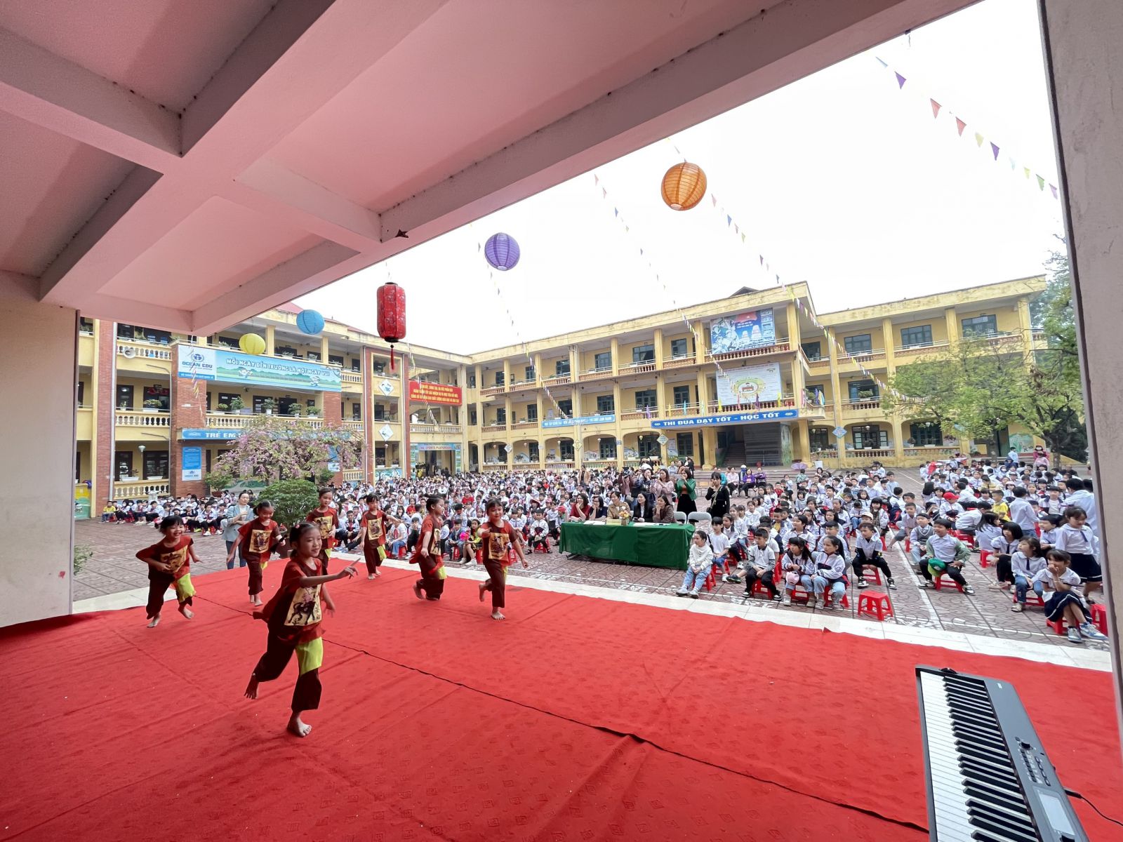 Một số học sinh đến từ các khối 1 và khối 2 biểu diễn
