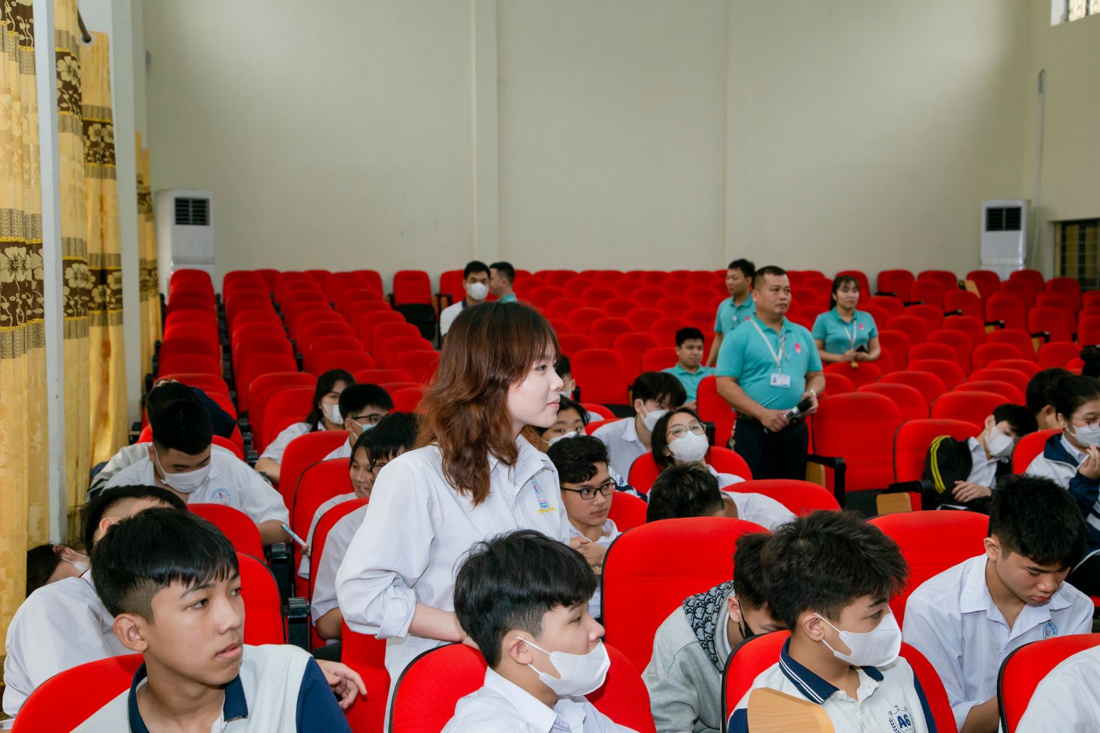 Tại buổi thăm quan, các em học sinh đã được xem video giới thiệu về quá trình xây dựng và phát triển của nhà trường; được nghe thầy Thân Văn Hùng - TP Tuyển sinh & Công tác HSSV tư vấn cụ thể về mô hình đào tạo “9+” hiện đang được áp dụng rất thành công tại trường Cao đẳng Kỹ thuật Công nghiệp; các ngành/ nghề đào tạo khi các em học THPT song song với học Trung cấp, văn bằng và cơ hội nghề nghiệp sau khi tốt nghiệp.