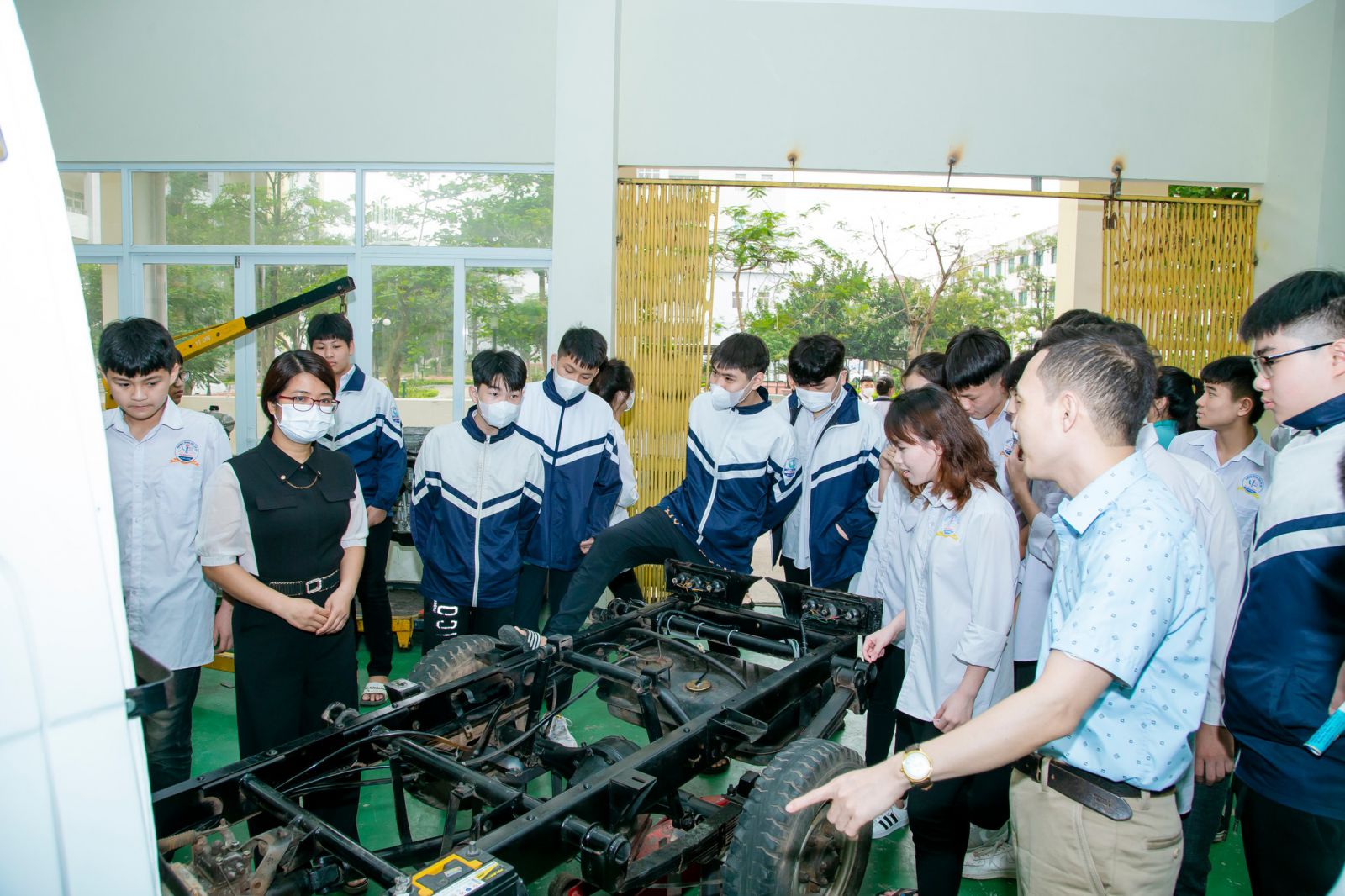 Cũng tại đây, các em đã được đi thăm quan thực tế khuôn viên nhà trường; các xưởng thực hành; phòng thí nghiệm; hệ thống giảng đường, phòng máy hiện đại, ... của các khoa, Trung tâm. Nhiều em đã mạnh dạn bày tỏ cảm xúc khi lần đầu tiên được đặt chân đến ngôi trường này, vui cũng có mà tò mò cũng nhiều. Những câu hỏi liên quan đến ngành, nghề đào tạo của các em đã được cán bộ tuyển sinh và giáo viên các khoa hướng dẫn, giải đáp rất cụ thể, rõ ràng.