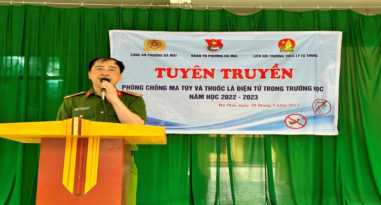 Sáng 20/4/2023, Đoàn thanh niên phường Đa Mai phối hợp cùng Công an phường và trường THCS Lý Tự Trọng tổ chức tuyên truyền về phòng, chống ma túy và thuốc lá điện tử cho gần 400 học sinh của trường THCS Lý Tự Trọng.