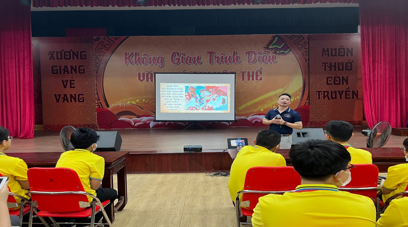 Sau khi làm lễ dâng hương và báo công xong, các em được chia thành 3 đoàn để tham gia học tập, trải nghiệm các hoạt động. Đoàn 1 gồm các học sinh khối 7 di chuyển về nhà trưng bày, tổ chức sự kiện. Tại đây, các em được nghe thày giáo Nguyễn Văn Hào tuyên truyền với bài Giáo dục địa phương “Lịch sử Bắc Giang từ thế kỉ XIII đến đầu thế kỉ XIV và cuộc khởi nghĩa Lam Sơn”