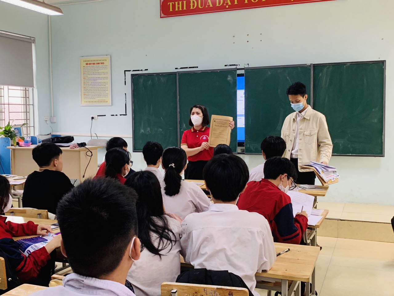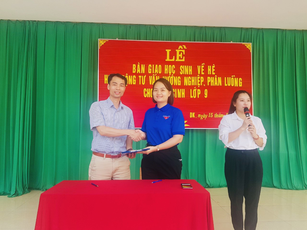 Sau khi tổ chức xong hoạt động bàn giao học sinh về sinh hoạt hè, các em học sinh lớp 9 được tổ chức hoạt động tư vấn, hướng nghiệp và phân luồng. Hoạt động này được thực hiện bởi các thầy cô và sinh viên của Trường Cao đẳng Việt Hàn. Đây là cơ hội mở cho các bạn học sinh lớp 9 có lực học hạn chế để thực hiện tiếp ước mơ học tập của các em. Hy vọng ngôi trường mà các em lựa chọn sẽ đem lại nhiều cơ hội, giúp các em toả sáng và trở thành người thợ, người thầy, người công dân tốt. Hoạt động đã kết thúc lúc 8h15 phút cùng ngày.