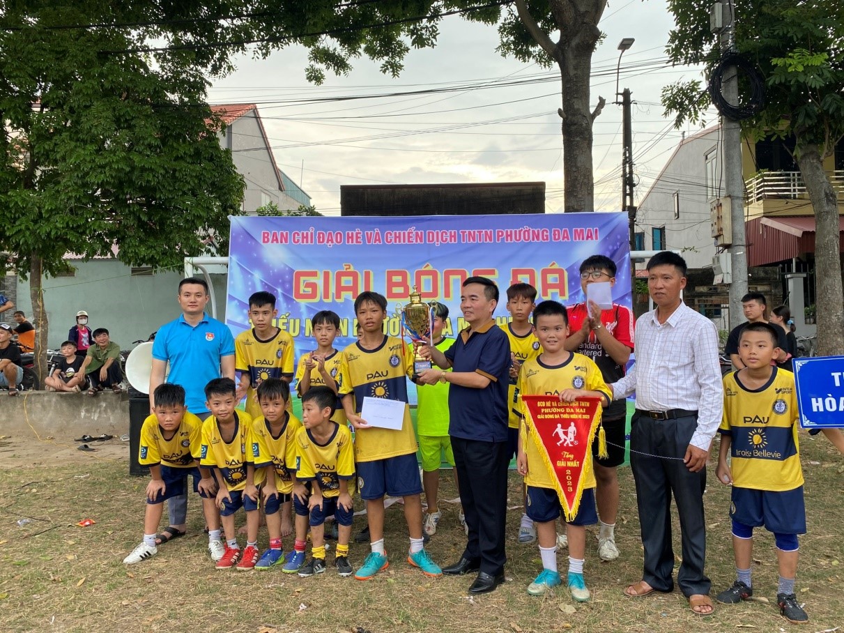Giải bóng đá thiếu niên phường Đa Mai năm 2023 đã kết thúc sau 02 tuần tranh tài. Giải đấu năm nay thu hút 07 đội bóng, thi đấu theo hình chia bảng thi đấu. Với tinh thần nhiệt huyết, cao thượng, trung thực và đoàn kết fair-play, các đội bóng đã cống hiến cho khán giả tổng số 12 trận đấu với nhiều bàn thắng đẹp mắt từ các pha bóng đẹp. Trận chung kết giữa đội tuyển TDP Mai Đình và TDP Hòa Sơn kịch tính đến nghẹt thở tại vòng sút luân lưu, kết quả tỷ số 3 -2 nghiêng về đội tuyển TDP Hòa Sơn. Kết quả toàn giải: Vô địch – TDP Hòa Sơn; Nhì – TDP Mai Đình; Đồng giải ba: TDP Tân Thành – TDP Thanh Mai; Khuyến khích: TDP Mai Sẫu – TDP Tân Mai – TDP Mai Đọ.