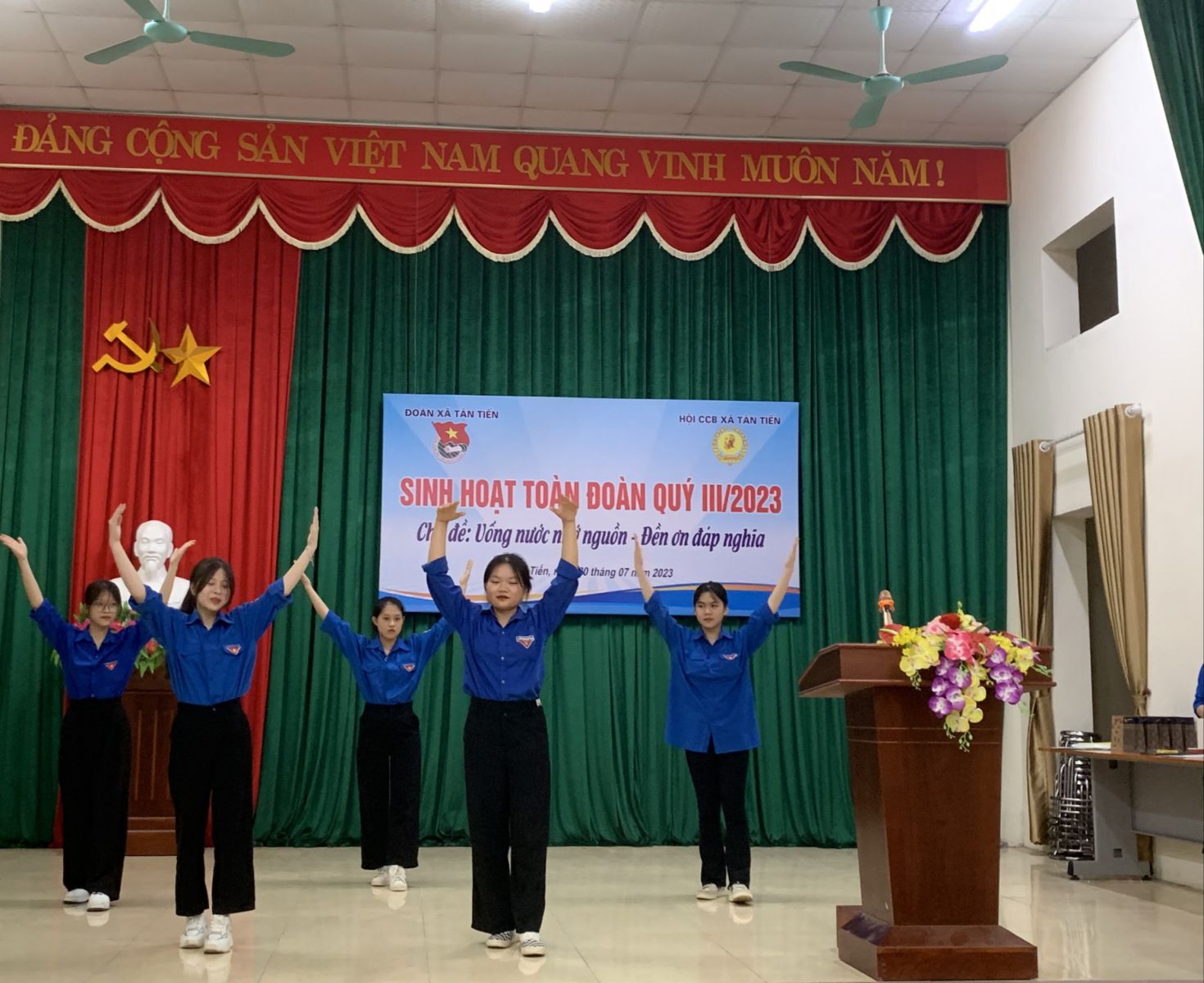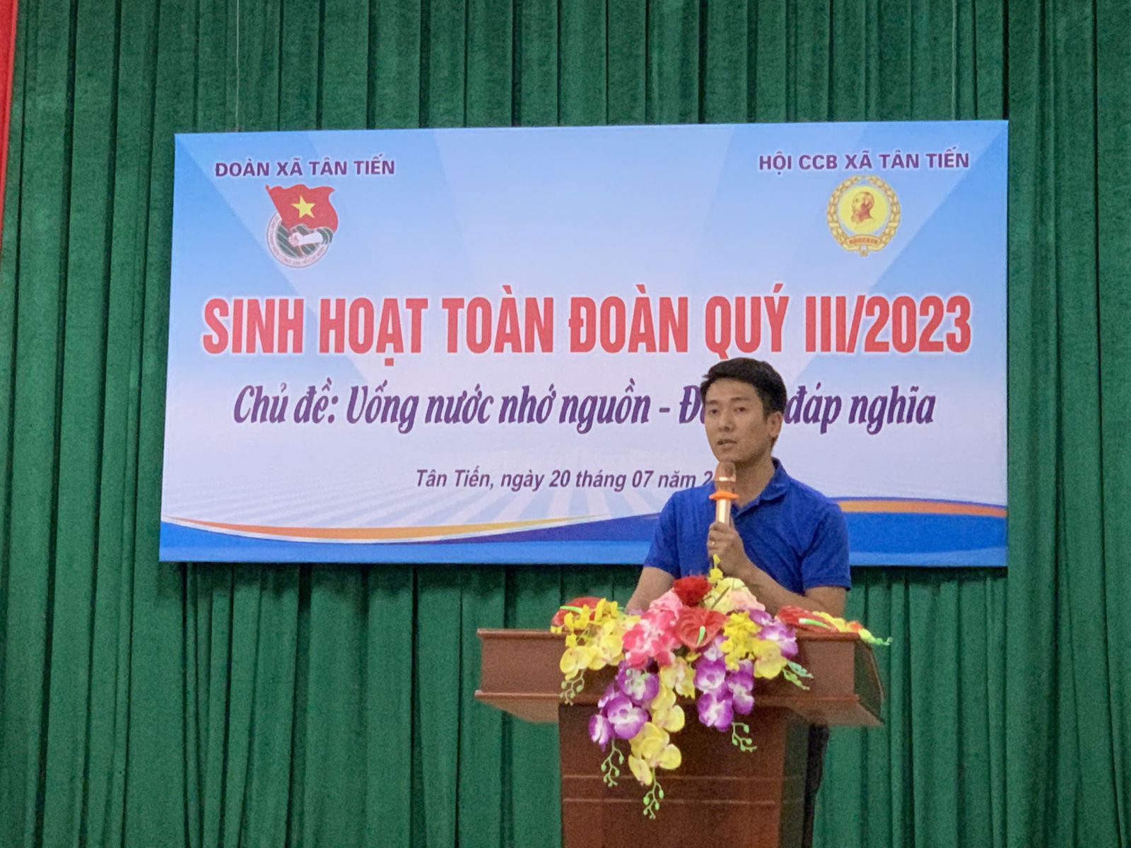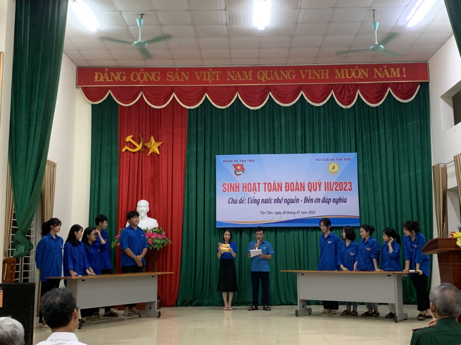 Tối 20/7/2023, tại Nhà văn hóa thôn Ngò, Đoàn xã Tân Tiến phối hợp với Hội Cựu chiến binh xã Tân Tiến tổ chức Sinh hoạt toàn đoàn quý III/2023 với chủ đề “Uống nước nhớ nguồn - Đền ơn đáp nghĩa” với sự tham gia của hơn 100 đoàn viên, thanh niên xã Tân Tiến