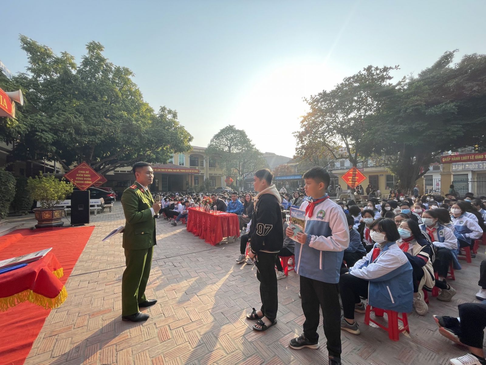 Tại đây, các học sinh toàn trường được nghe đồng chí Trung úy Vũ Anh Tuấn - Cán bộ Công an phường Trần Nguyên Hãn chia sẻ các kiến thức tương tác an toàn, sáng tạo, lành mạnh trên môi trường mạng. Với cách chia sẻ thân thiện, gần gũi từ những câu chuyện tình huống thực tế của anh đã giúp các em học sinh có thêm hiểu biết và kĩ năng ứng xử tương tác, an toàn, lành mạnh trên môi trường mạng. Học sinh nhà trường được tuyên tuyền vê một số phương thức thủ đoạn các đối tượng phạm tội trên không gian mạng, phương thức sử dụng mạng internet hiệu quả, bảo vệ bản thân mình trên không gian mạng, tuyên truyền đấu tranh phản bác các quan điểm sai trái trên không gian mạng.