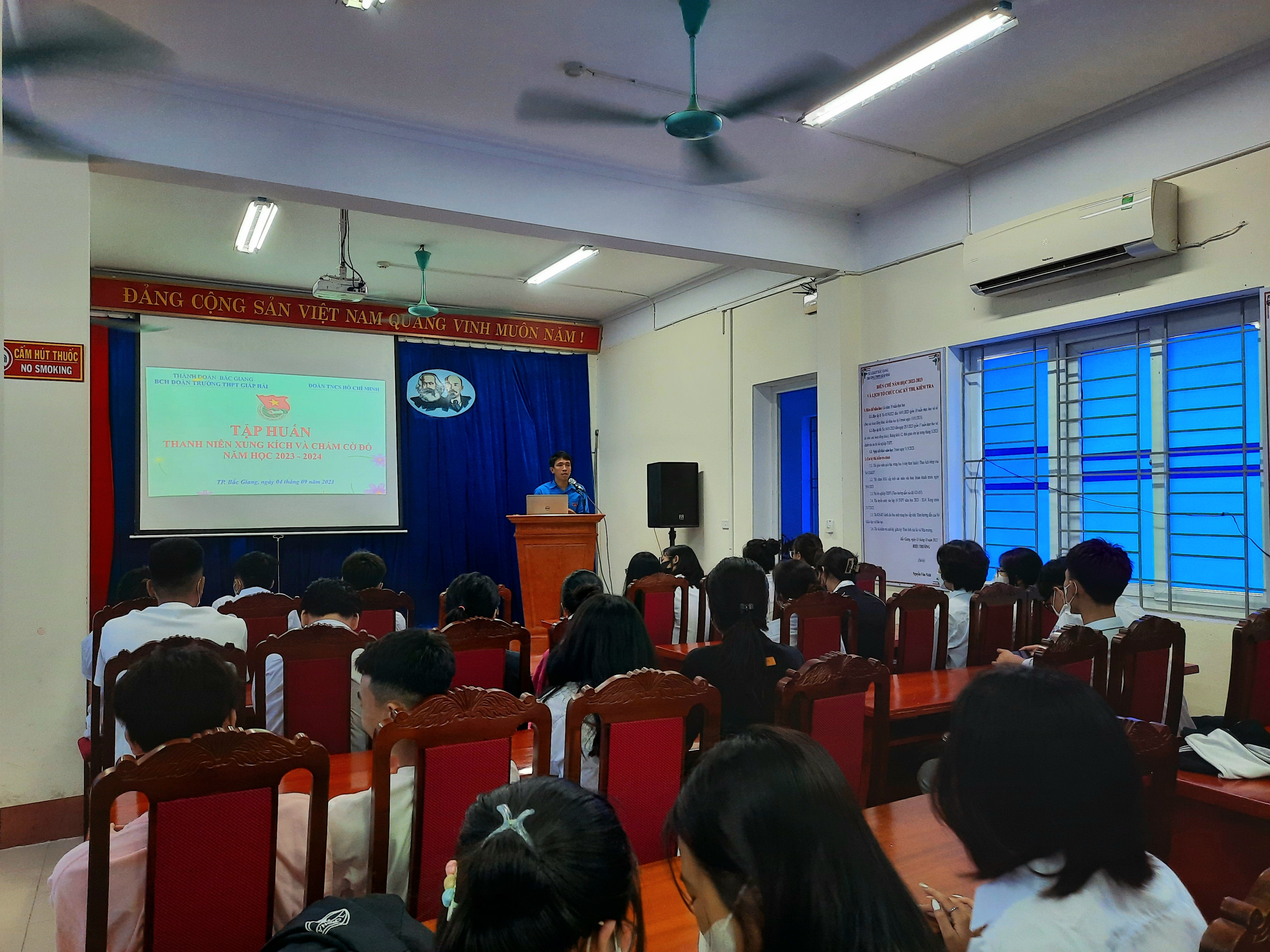 Để đưa các hoạt động của nhà trường cũng như các hoạt động đoàn năm học 2023-2024 sớm đi vào nề nếp, ổn định ngay từ đầu năm học. Ngày 04 tháng 9 năm 2023, BCH đoàn trường THPT Giáp Hải đã lên kế hoạch tập huấn cho 60 đoàn viên thanh niên trong đội thanh niên xung kích và 30 đoàn viên thanh niên trong đội chấm cờ đỏ của nhà trường.