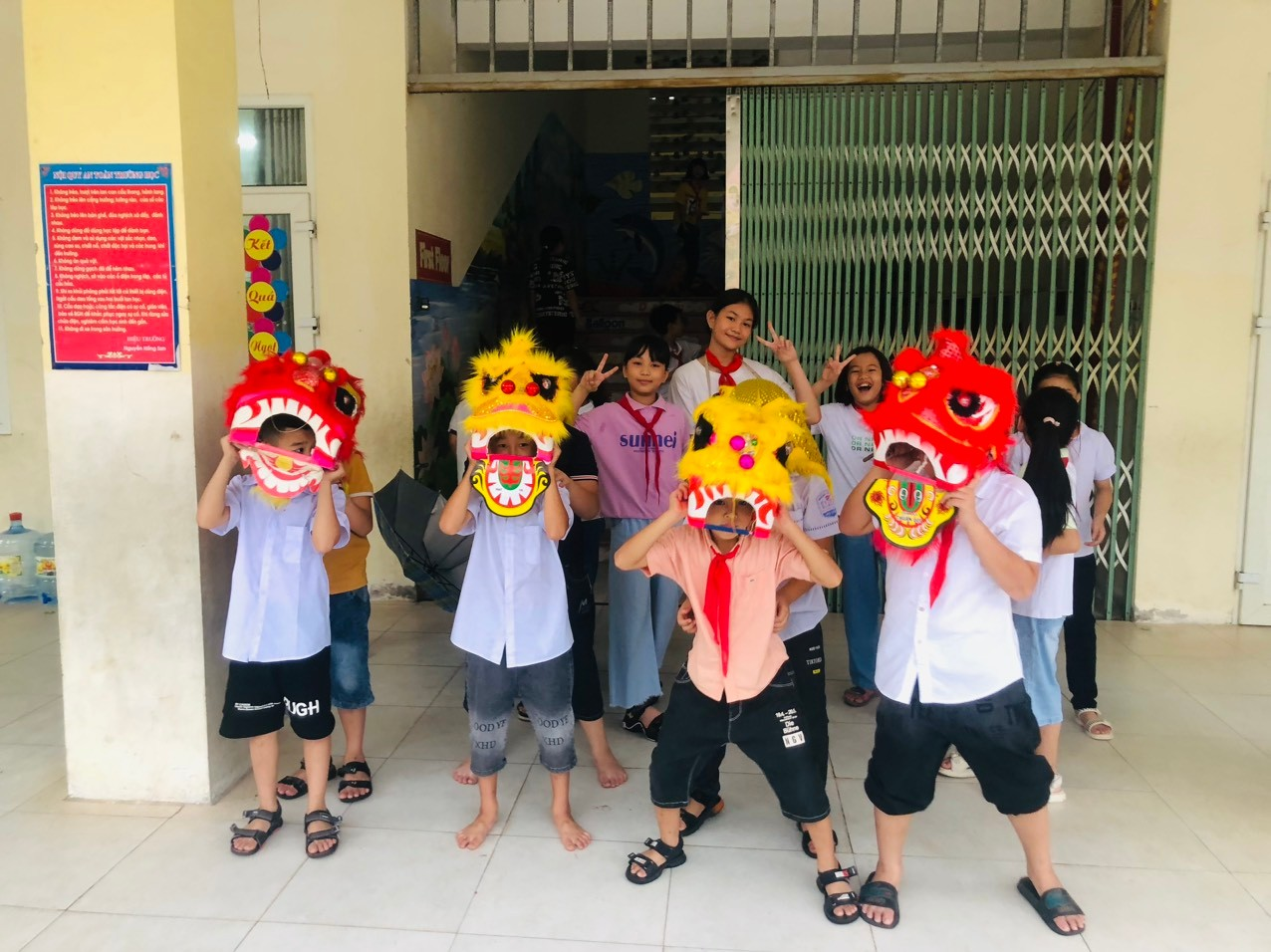 Đội múa Lân đã sẵn sàng đi múa lân rước đèn cùng học sinh các lớp