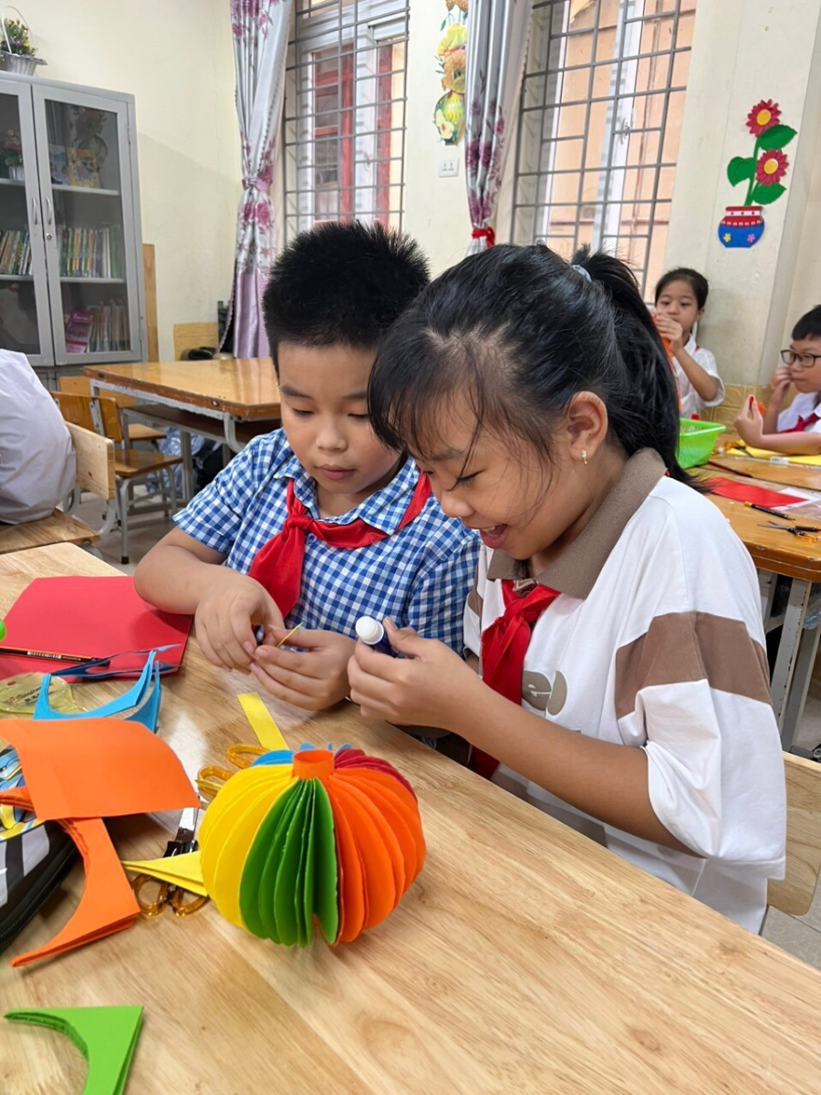 Học sinh lớp 5A4 làm lồng đèn chuẩn bị đón trung thu