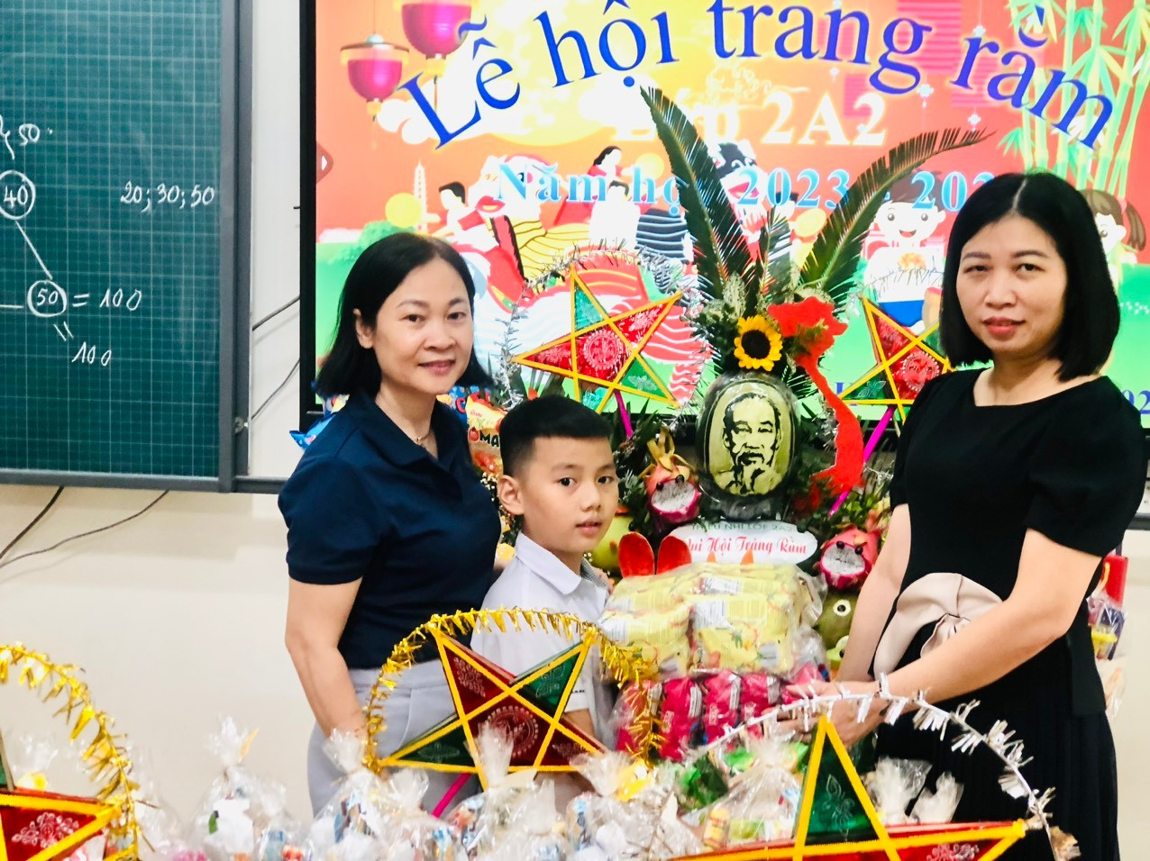 Những mâm cỗ trung thu được cô trò trang trí công phu và tỉ mỉ với nhiều chủ đề khác nhau, Các em được thỏa sức sáng tạo với mâm cỗ của mình. Mỗi lớp một ý tưởng, một chủ đề nhưng tất cả đều toát lên sự khéo léo, tinh tế, đẹp mắt và ấn tượng. Trước khi rước đèn, phá cỗ, các em được nghe giới thiệu về nguồn gốc Tết Trung thu qua ti vi của lớp, nghe đọc thư của Chủ tịch nước Võ Văn Thưởng gửi các cháu thiếu niên, nhi đồng nhân dịp Tết trung thu. Ban lãnh đạo nhà trường đến tặng quà các lớp.