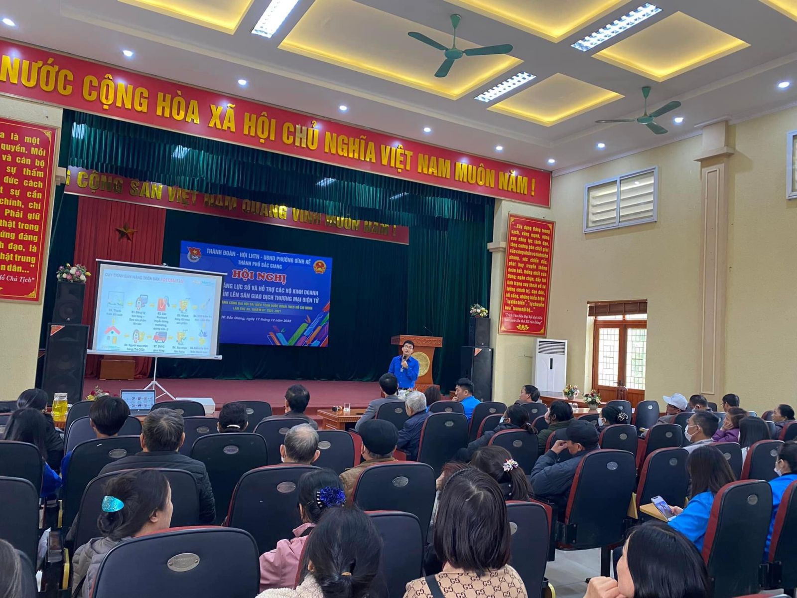 Tại Hội nghị, các cơ sở kinh doanh đã được đoàn viên, thanh niên trực tiếp hướng dẫn, hỗ trợ đưa sản phẩm lên sàn giao dịch thương mại điện tử, cách thức vận hành, bán hàng online.