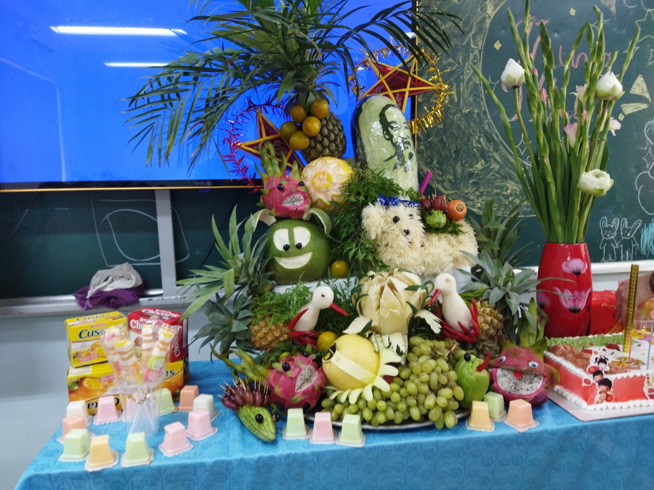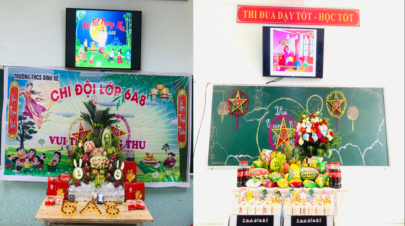 Trong dịp tết trung thu này, các em học sinh của các lớp không chỉ chuẩn bị các mâm cỗ trưng bày những sản vật của địa phương mà còn thể hiện sự khéo léo của đôi tay qua việc thiết kế những chiếc đèn ông sao, những con vật hết sức ngộ nghĩnh mang đậm màu sắc dân gian. Các bậc phụ huynh và học sinh cùng nhau trang trí và làm ra những mâm cỗ trung thu rất đẹp mắt, công phu và tỉ mỉ mang đậm phong cách riêng của từng lớp. Mỗi lớp một mâm cỗ lung linh sắc mầu rực rỡ.