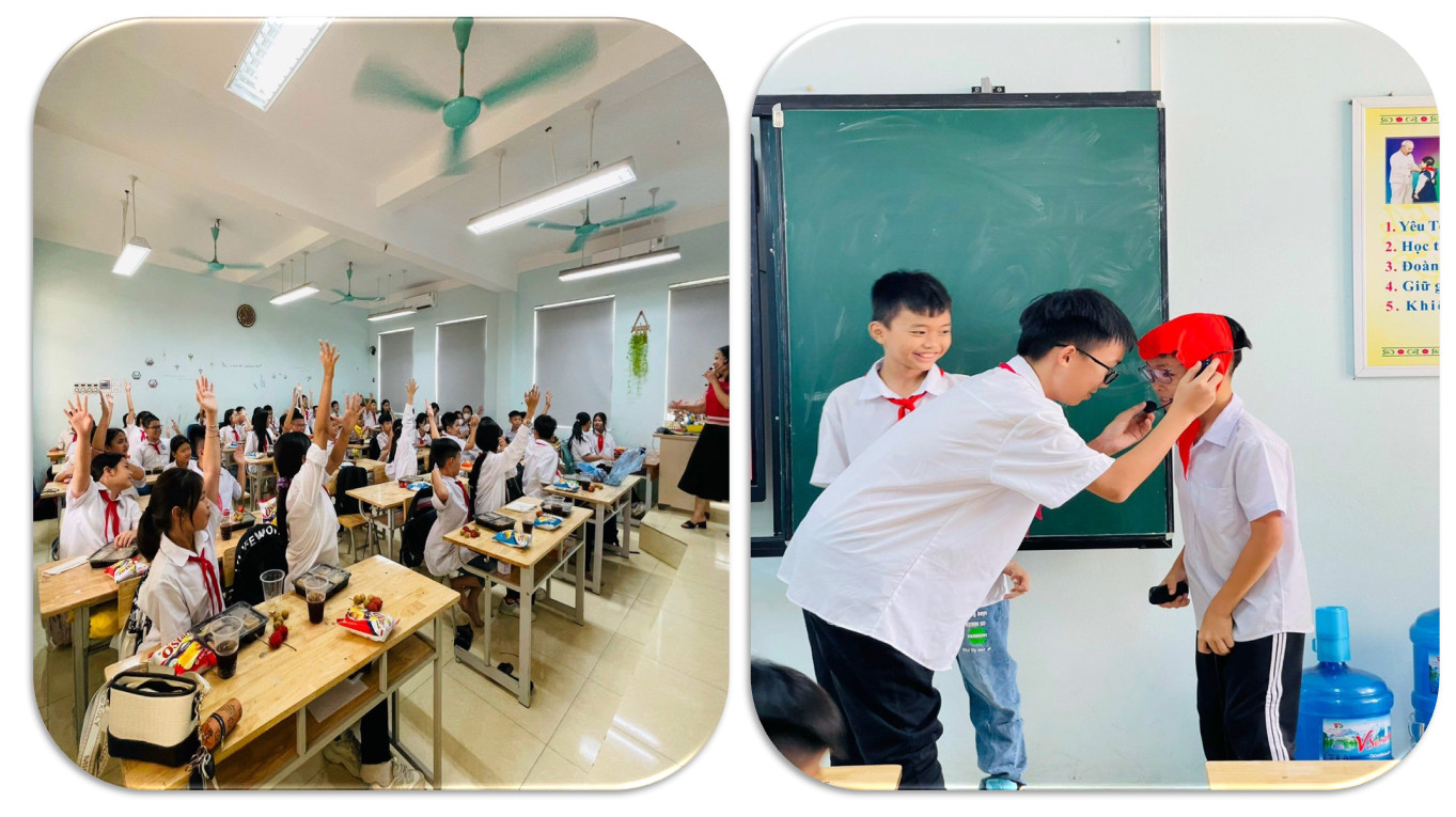 Không chỉ vậy, trong chương trình nhiều em học cùng với các thầy cô giáo chủ nhiệm xây dựng những trò chơi trải nghiệm tìm hiểu về ngày tết đoàn viên, về lĩnh vực học tập, trờ chơi bịt mắt bắt dê, tìm bạn đoán tên,… Những hoạt động trên đã giúp buổi tết đoàn viên sôi nổi và ý nghĩa hơn.