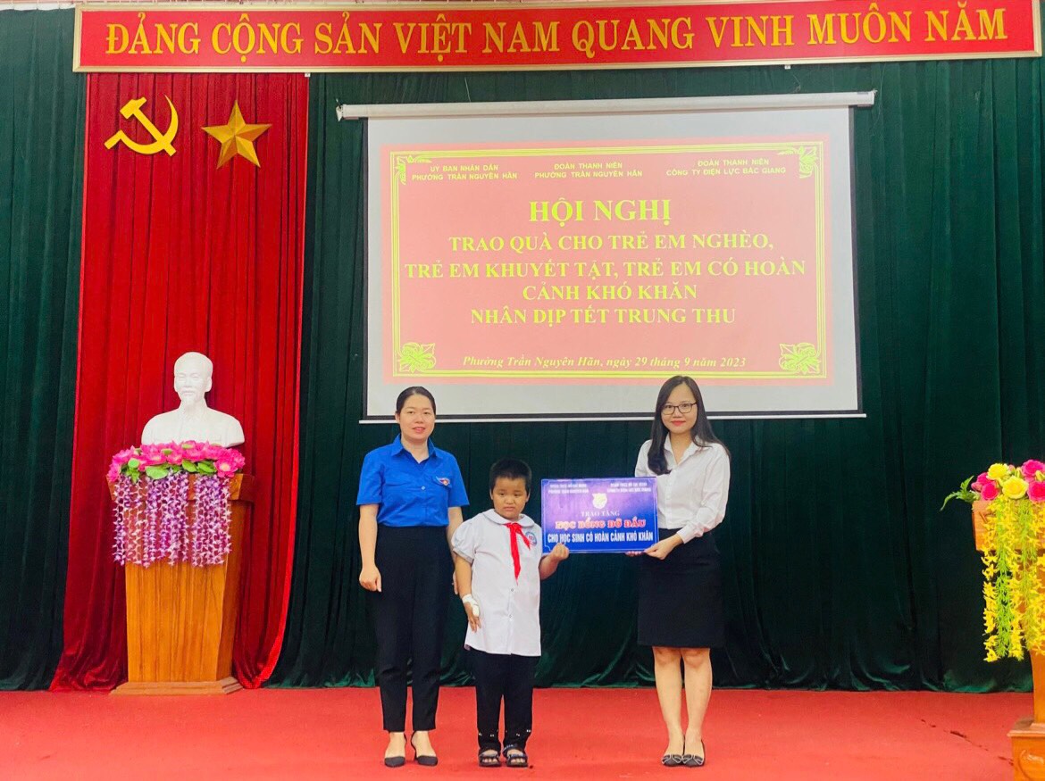 Sáng ngày 29/9/2023, Đoàn TN – UBND phường Trần Nguyên Hãn phối hợp với Đoàn TN Công ty điện lực Bắc Giang tổ chức trao học bổng và quà tặng cho học sinh khuyết tật và học sinh có hoàn cảnh khó khăn vươn lên trong học tập.