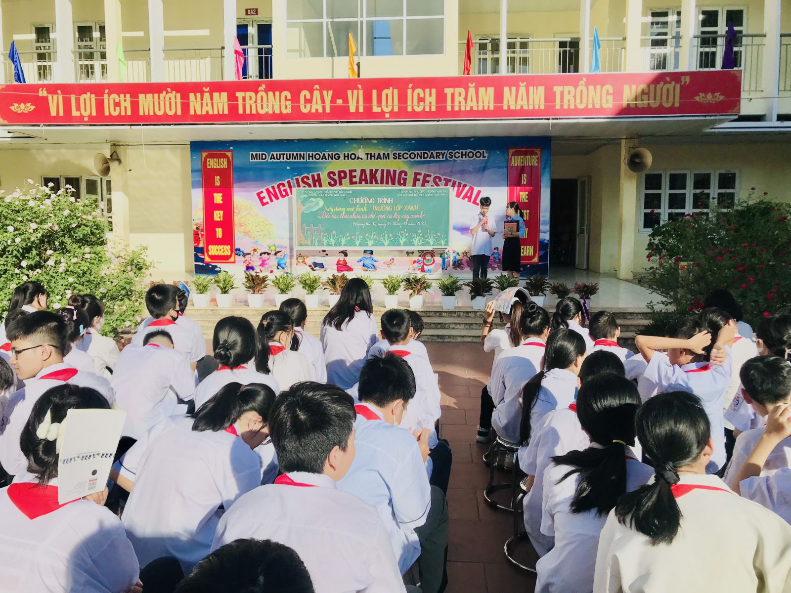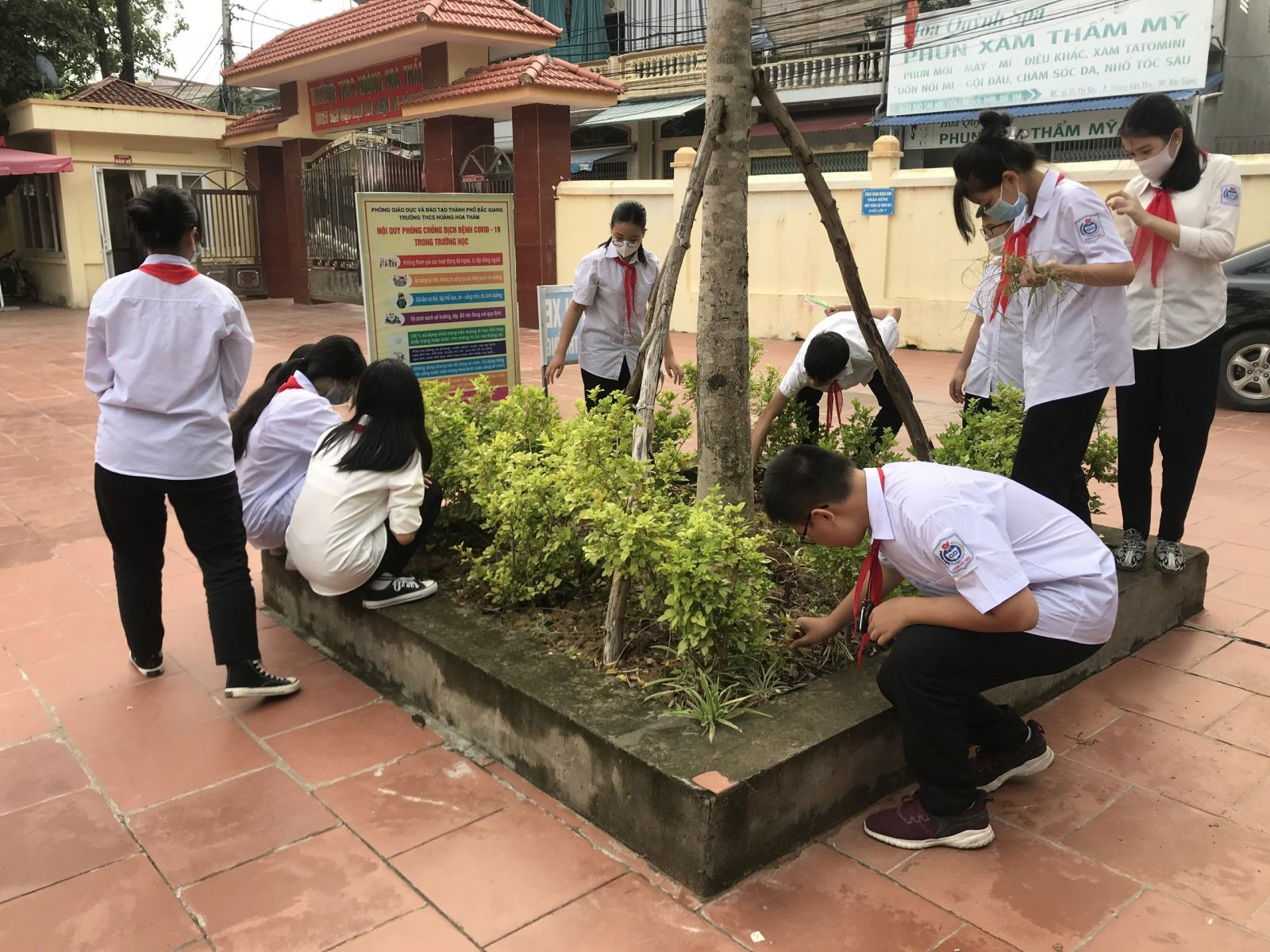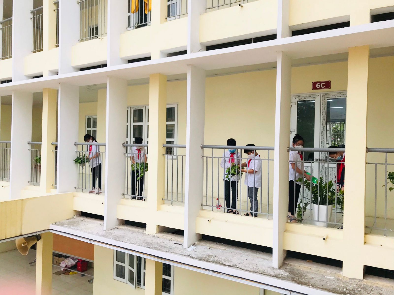 Trong chương trình, cô giáo Dương Thị Minh Nguyệt cũng đã phát động mô hình xây dựng “Trường lớp xanh”. Ngay sau khi phát động, các bạn học sinh trong nhà trường đã hưởng ứng bằng những việc làm cụ thể như nhổ cỏ, tưới nước và chăm sóc các bồn hoa cây cảnh trong nhà trường; Treo trang trí các chậu cây cảnh vừa đổi được dọc hành lang lớp học… Đây là một hoạt động rất ý nghĩa và thiết thực của thầy và trò trường THCS Hoàng Hoa Thám để giúp cho các em có ý thức bảo vệ môi trường và giúp các em có một môi trường học tập xanh – sạch – đẹp.