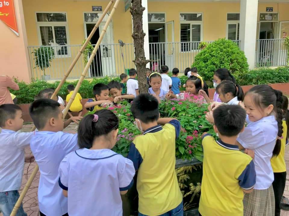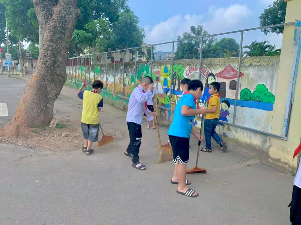 Do đã được giáo viên chủ nhiệm nhắc nhở, phân công từ trước. Vì vậy các em đã nhanh chóng toả ra các khu vực xung quanh khuôn viên trường để nhổ cỏ, quét rác, nhặt rác… Một không khí làm việc chan hòa, vui vẻ và ấm áp. Bạn nào cũng rất vui vẻ. Chỉ sau một lát, toàn bộ khuôn viên trường đã trở nên sạch sẽ.