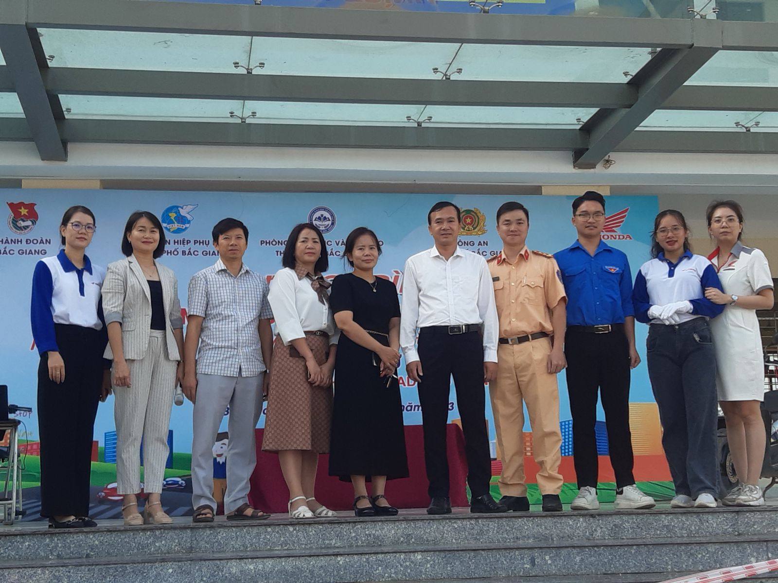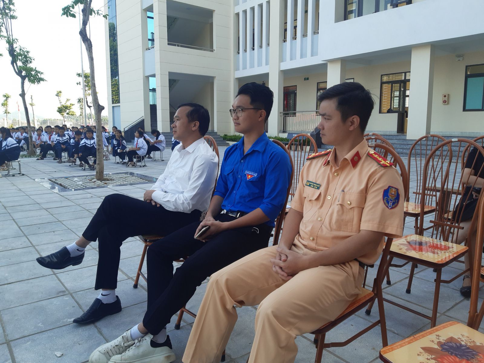 Về dự có đồng chí: Hoàng Trọng Hiệp cán bộ cảnh sát giao thông thành phố Bắc Giang, anh Nguyễn Đức Vương phó bí thư Đoàn phường Đa Mai, cùng các thầy cô giáo và hơn 400 em học sinh nhà trường có mặt đông đủ.