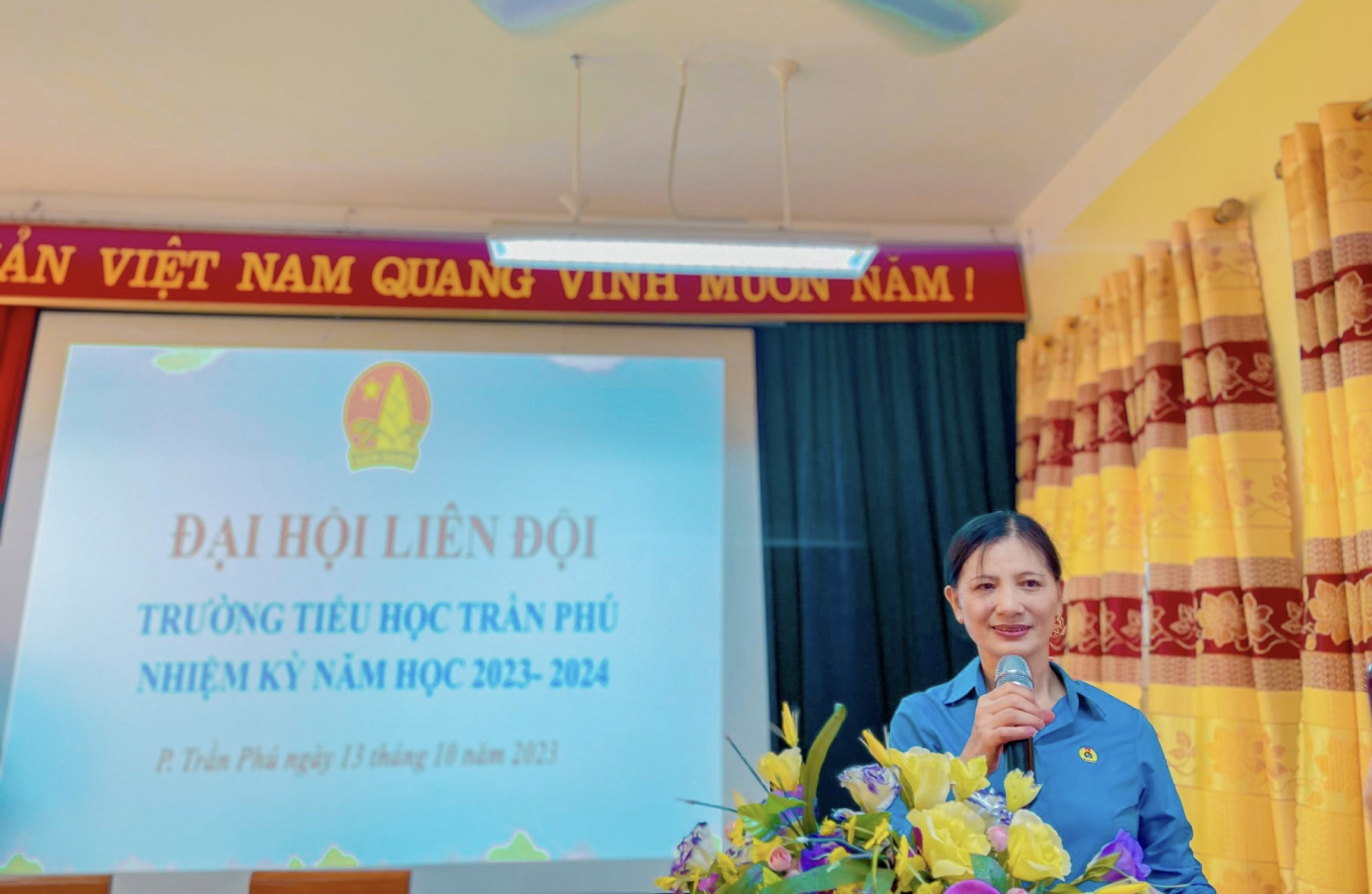 Đến dự với Đại hội có cô Nguyễn Thị Tuyến - Chủ tịch công đoàn, Phó hiệu trưởng nhà trường cùng đông đủ các anh, chị phụ trách khối 4, 5 và các bạn đội viên, nhi đồng tiêu biểu đại diện cho ĐVNĐ trong toàn Liên đội cũng có mặt đầy đủ.