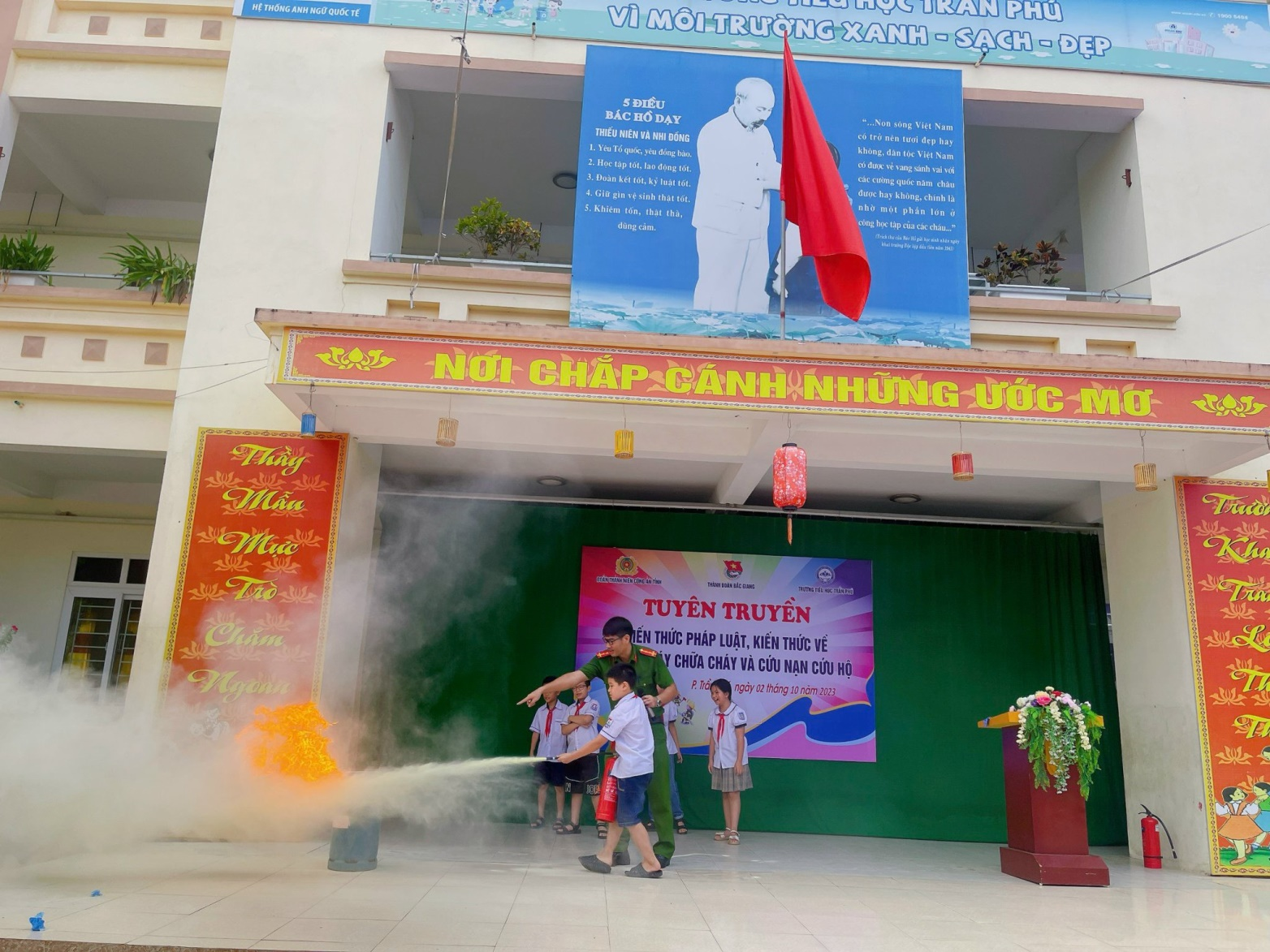 Tham dự buổi tuyên truyền có Trung tá Bùi Thị Ánh Hồng - Phó trưởng phòng công tác Đảng và công tác chính trị - Công an Tỉnh; Trung tá Nguyễn Thị Kiều Hoa - Trưởng ban Thanh niên Công an Tỉnh; các đồng chí cán bộ Phòng cảnh sát PCCC, CNCH; các đồng chí đại diện đoàn thanh niên công an tỉnh, đoàn thanh niên Phường Trần Phú; Tất cả cán bộ, giáo viên và các em học sinh toàn trường.