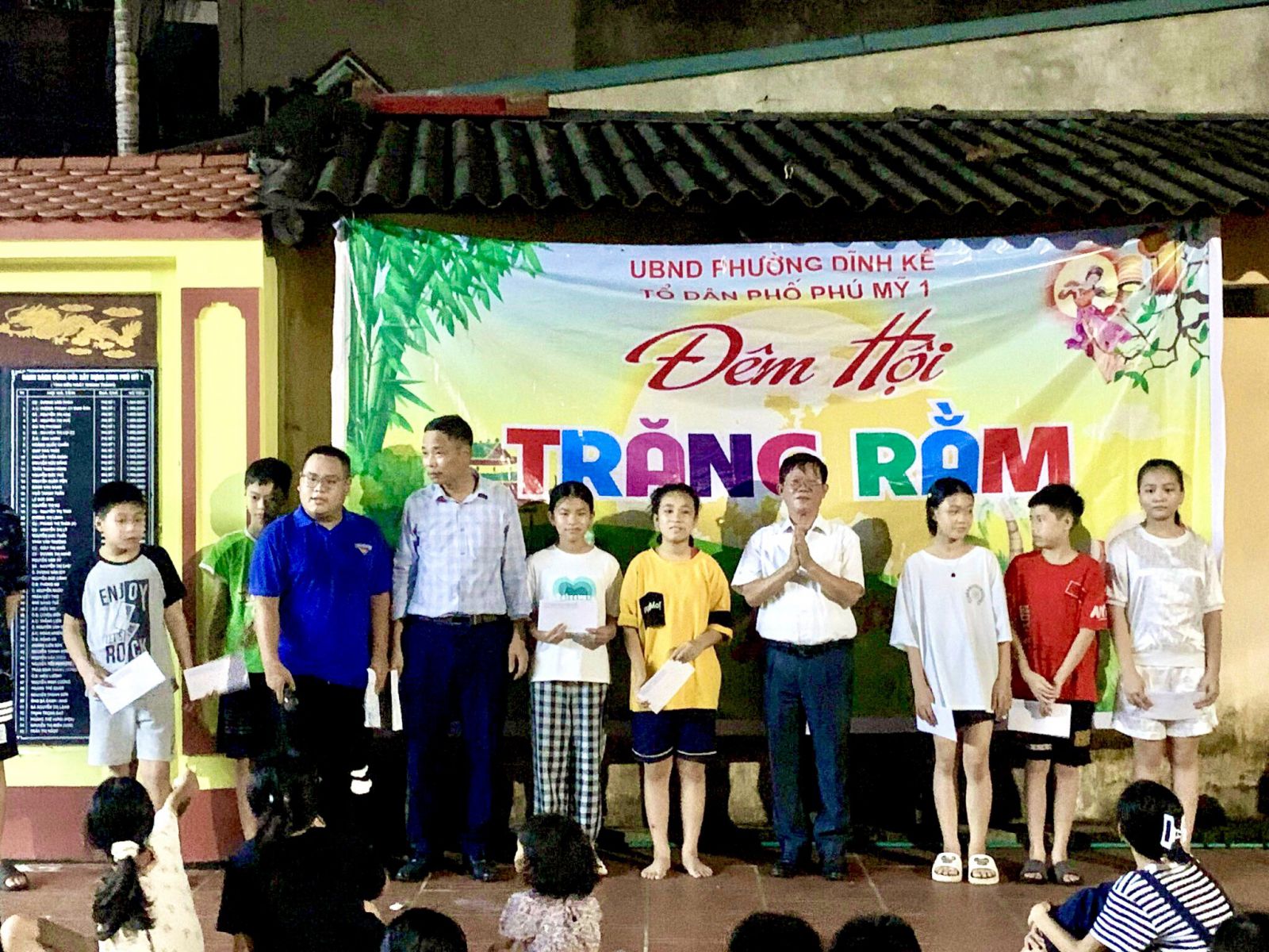 Căn cứ Kế hoạch số 61/KH-UBND ngày 05/9/2023 của UBND phường Dĩnh Kế về việc tổ chức hoạt động Tết trung thu cho trẻ em năm 2023. Thực hiện CV chỉ đạo của BTV Đoàn phường Dĩnh Kế, 11/11 chi đoàn thanh niên phối hợp với tổ dân phố trên địa bàn phường tổ chức Đêm hội trăng rằm với chủ đề "Đèn lồng thắp sáng ước mơ" năm 2023 cho các cháu thiếu nhi tại các nhà văn hoá.