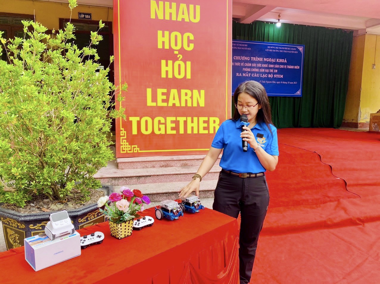Trong chương trình, cô Trần Thị Hương - Chủ nhiệm câu lạc bộ Lego giới thiệu lợi ích của STEM. thầy Trần Vãn Nam - Giảng viên trường Cao Đẳng Việt Hàn giới thiệu về các Robot và cách ra lệnh cho Robot thực hiện mệnh lệnh của con người. Các em học sinh được tham gia trải nghiệm thực hành lập trình trí tuệ nhân tạo: nhận diện khuôn mặt và báo nhiệt độ với Robot Rocky Codey và tham gia trò chơi phá bóng với Robot Mbot. Qua buổi ra mắt, các thành viên trong câu lạc bộ đều có tinh thần phấn khởi, hào hứng tham gia xây dựng, thiết kế các mô hình, sản phẩm ứng dụng trong cuộc sống chuẩn bị cho nội dung sinh hoạt của câu lạc bộ lần sau.