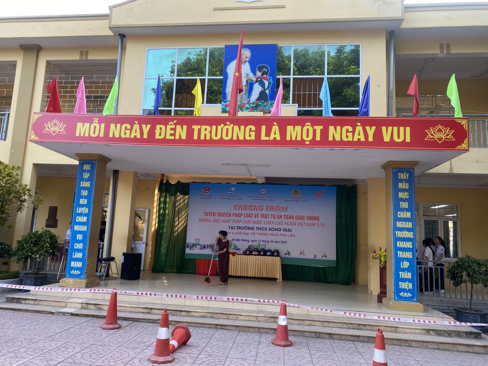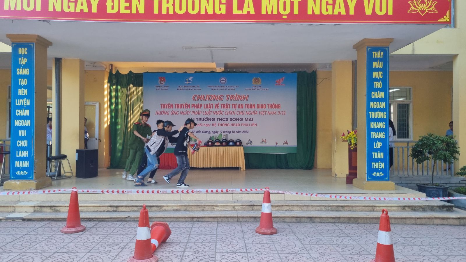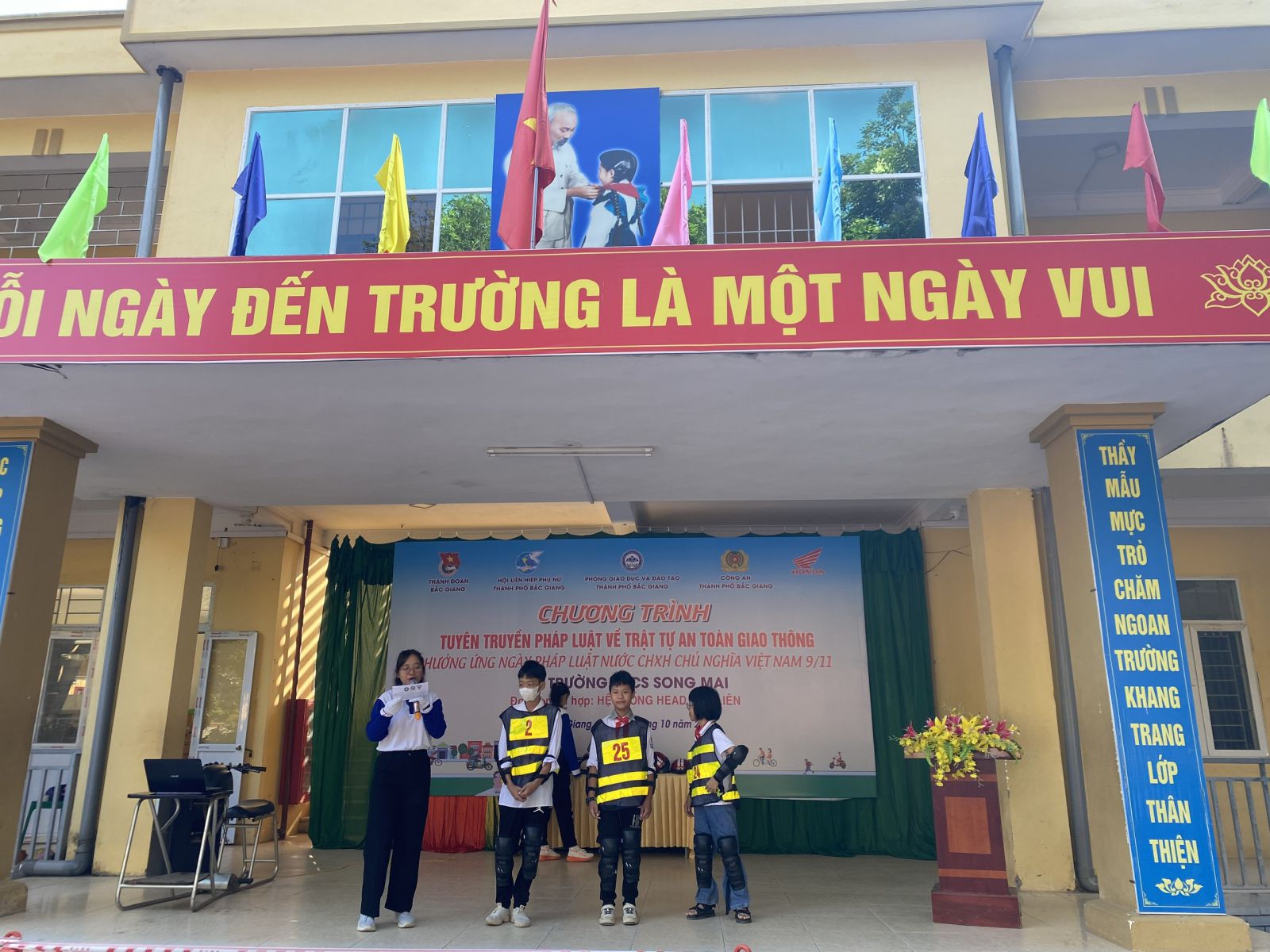 Hôm nay, liên đội trường THCS Song Mai phối hợp với Công ty Honda Phú Liên tổ chức chương trình tuyên truyền pháp luật về trật tự ATGT – Hưởng ứng ngày pháp luật Nước Cộng hòa xã hội chủ nghĩa Việt Nam 9/11;
