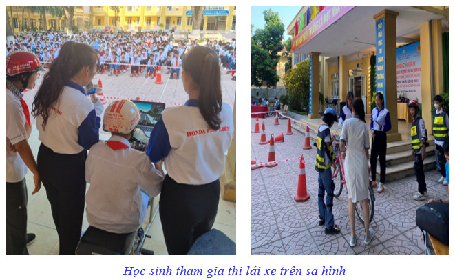 Sau đó là đến các bài học “Đội mũ đúng cách, Ngồi sau xe máy, xe đạp an toàn, hướng dẫn cách nhận biết biển quảng cáo , thi lái xe trên sa hình do các hướng dẫn viên Lái xe an toàn của Cửa hàng Honda Phú Liên thực hiện.