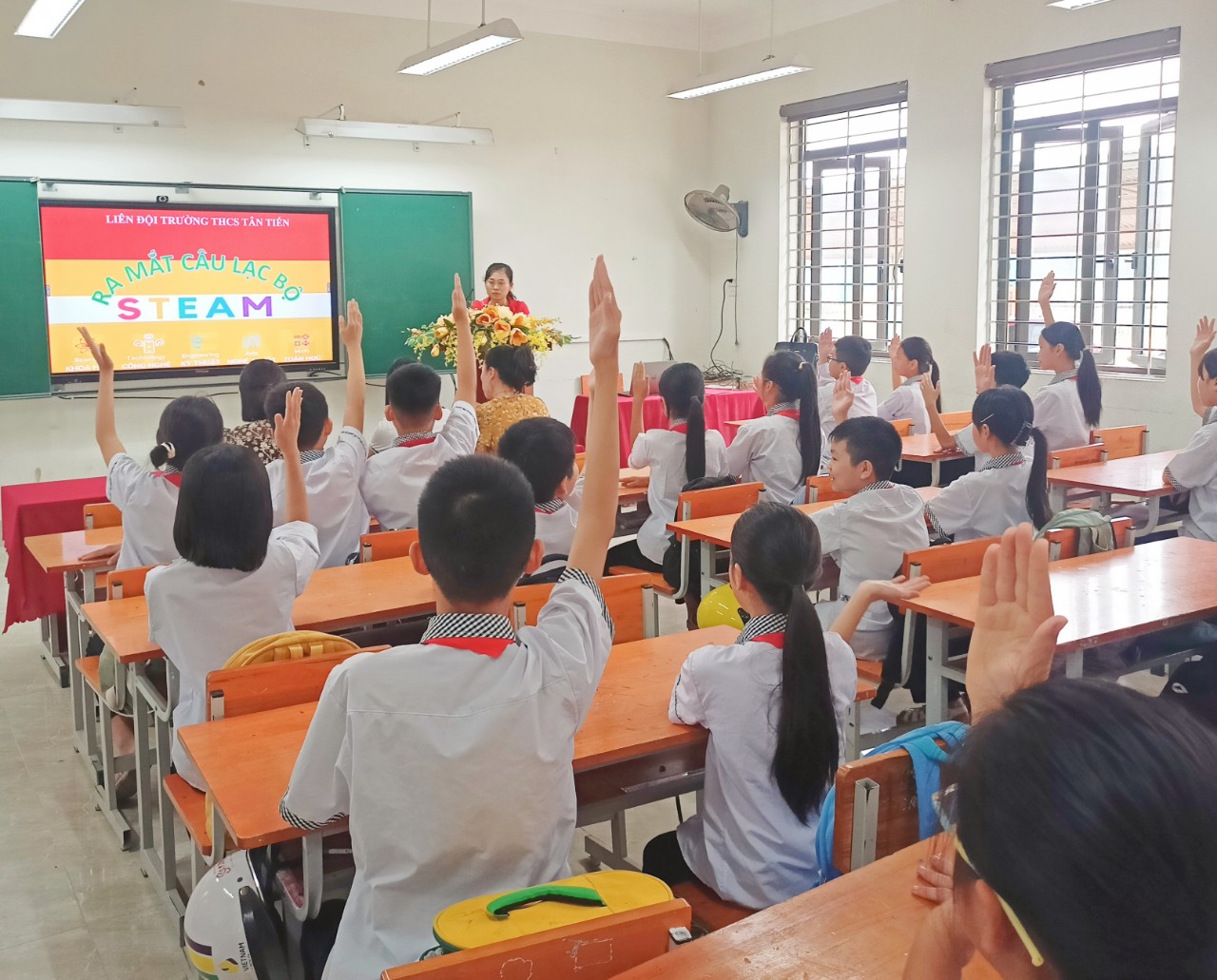 Đến dự buổi lễ ra mắt câu lạc bộ STEM năm học 2023-2024, có Thầy Đặng Thanh Đức, Phó Bí thư chi bộ, Phó Hiệu trưởng nhà trường, các thầy cô trong ban chủ nhiệm CLB và sự có mặt của 42 em học sinh khối 6,7,8 trường THCS Tân Tiến.