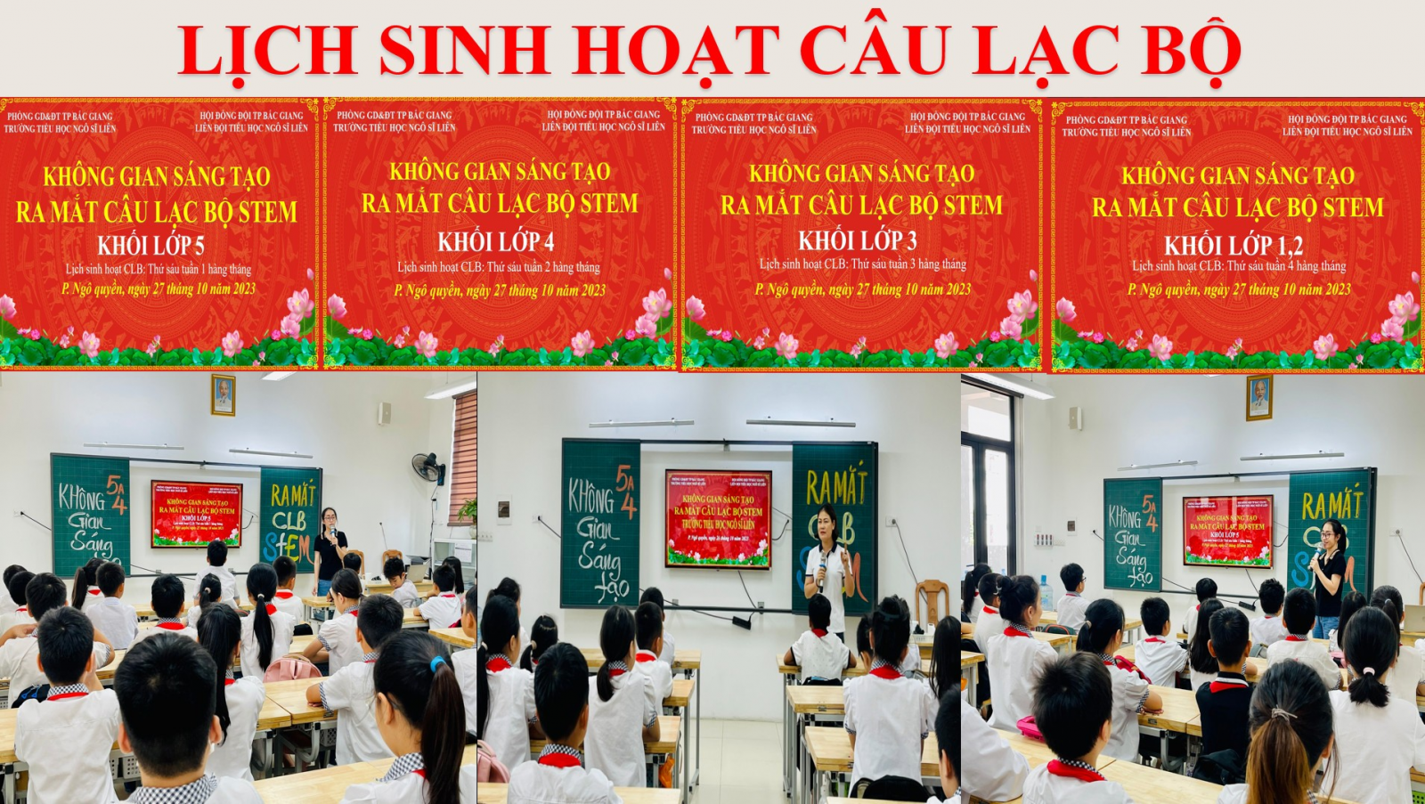 Khối lớp 1,2: Sinh hoạt CLB khối vào thứ sáu tuần 4 hàng tháng