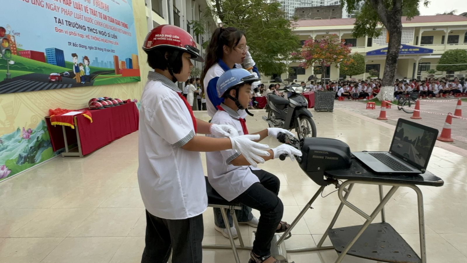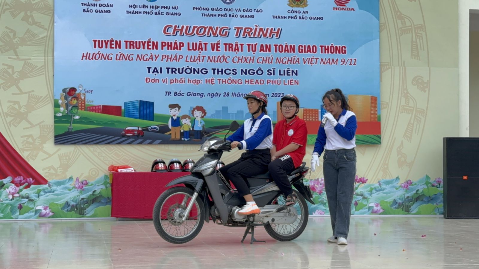 Thực hiện sự chỉ đạo của Hội đồng đội thành phố Bắc Giang; thực hiện chương trình công tác Đội và phong trào thiếu nhi năm học 2023 – 2024, sáng ngày 28/10/2023, liên đội trường THCS Ngô Sĩ Liên phối hợp cùng phòng CSGT – Công an thành phố, hệ thống Honda Phú Liên tổ chức buổi tuyên truyền pháp luật về trật tự ATGT và hưởng úng ngày pháp luật Việt Nam tới toàn thể cán bộ giáo viên, nhân viên và học sinh toàn trường.