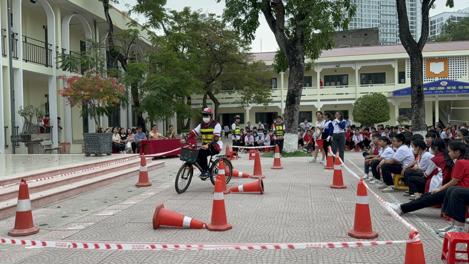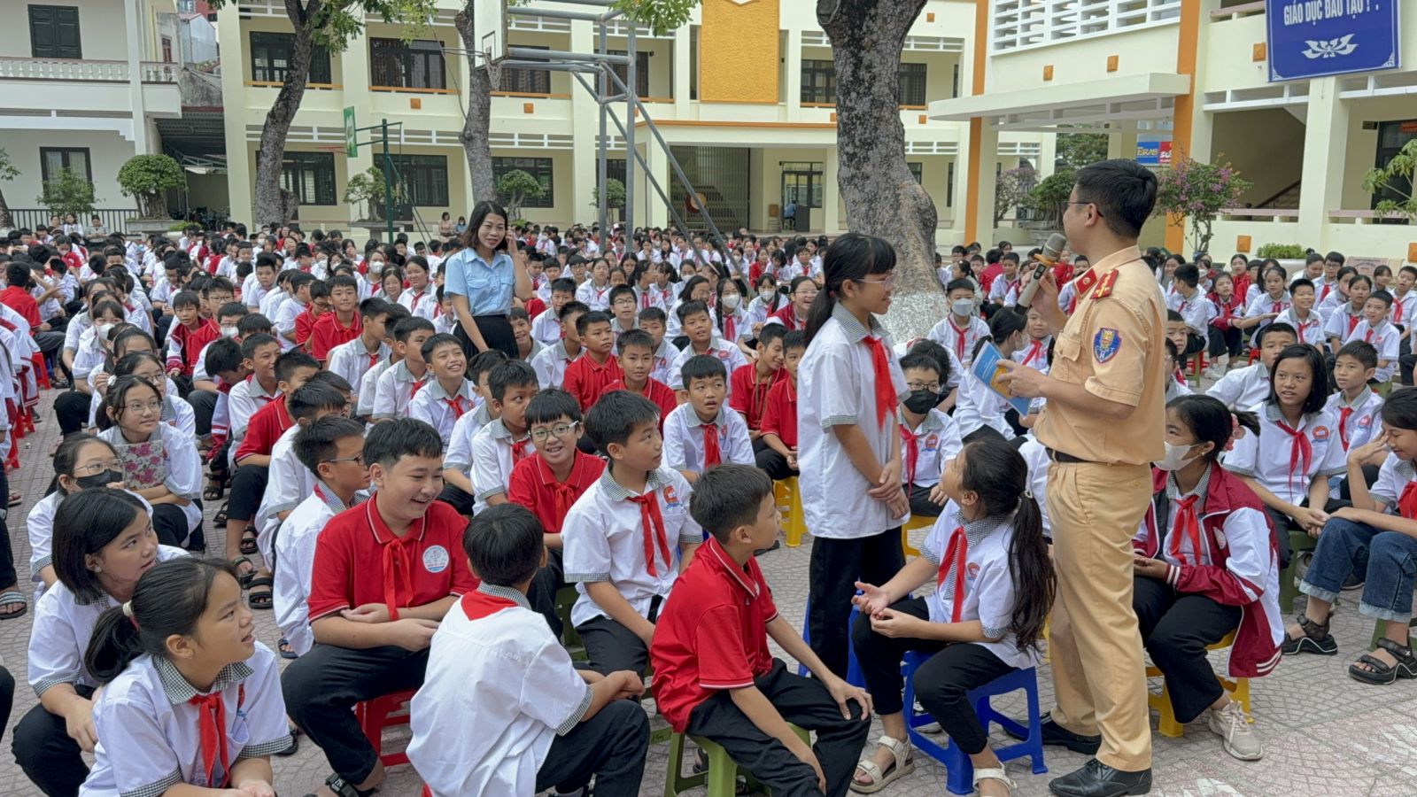 Đến với buổi tuyên truyền, Đ/c Hoàng Trọng Hiệp – cán bộ phòng CSGT – Công an thành phố đã có buổi giao lưu chia sẻ về luật ATGT liên quan trực tiếp đến các em học sinh như: độ tuổi sử dụng xe máy điện, xe đạp điện, cách xử lý khi gặp các tín hiệu, biển báo giao thông, giữ an toàn khi tham gia giao thông bằng xe đạp...