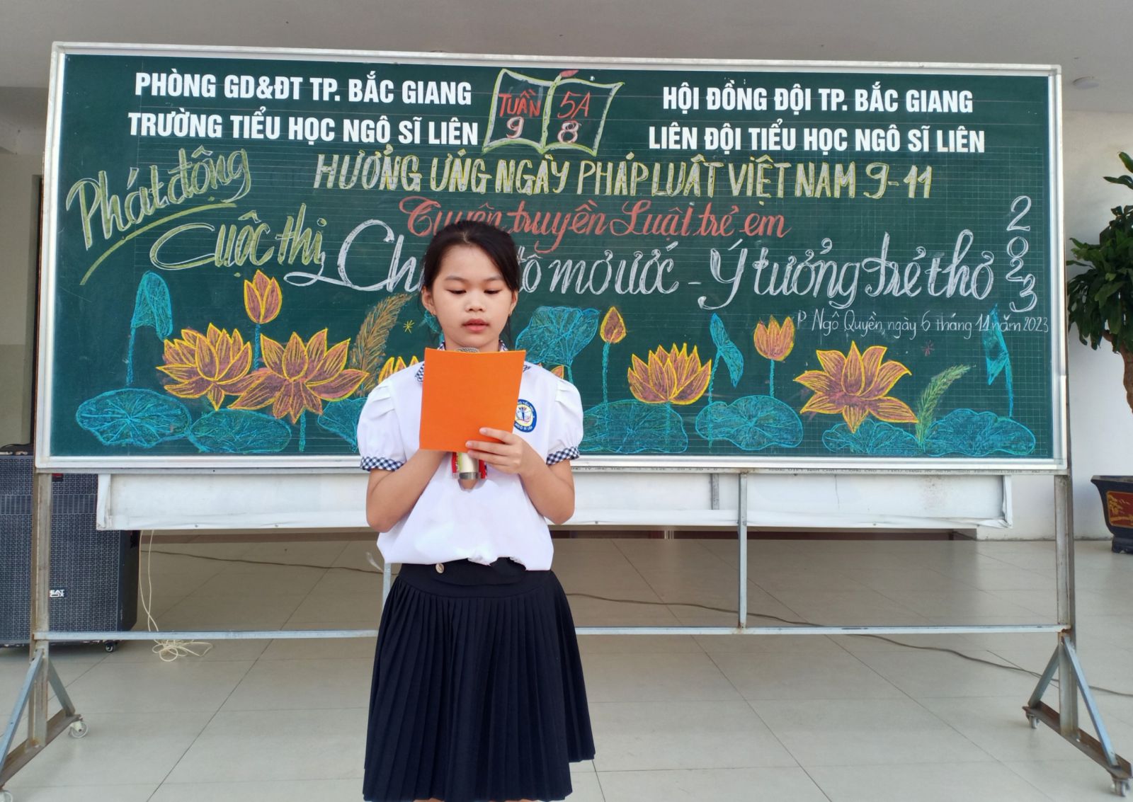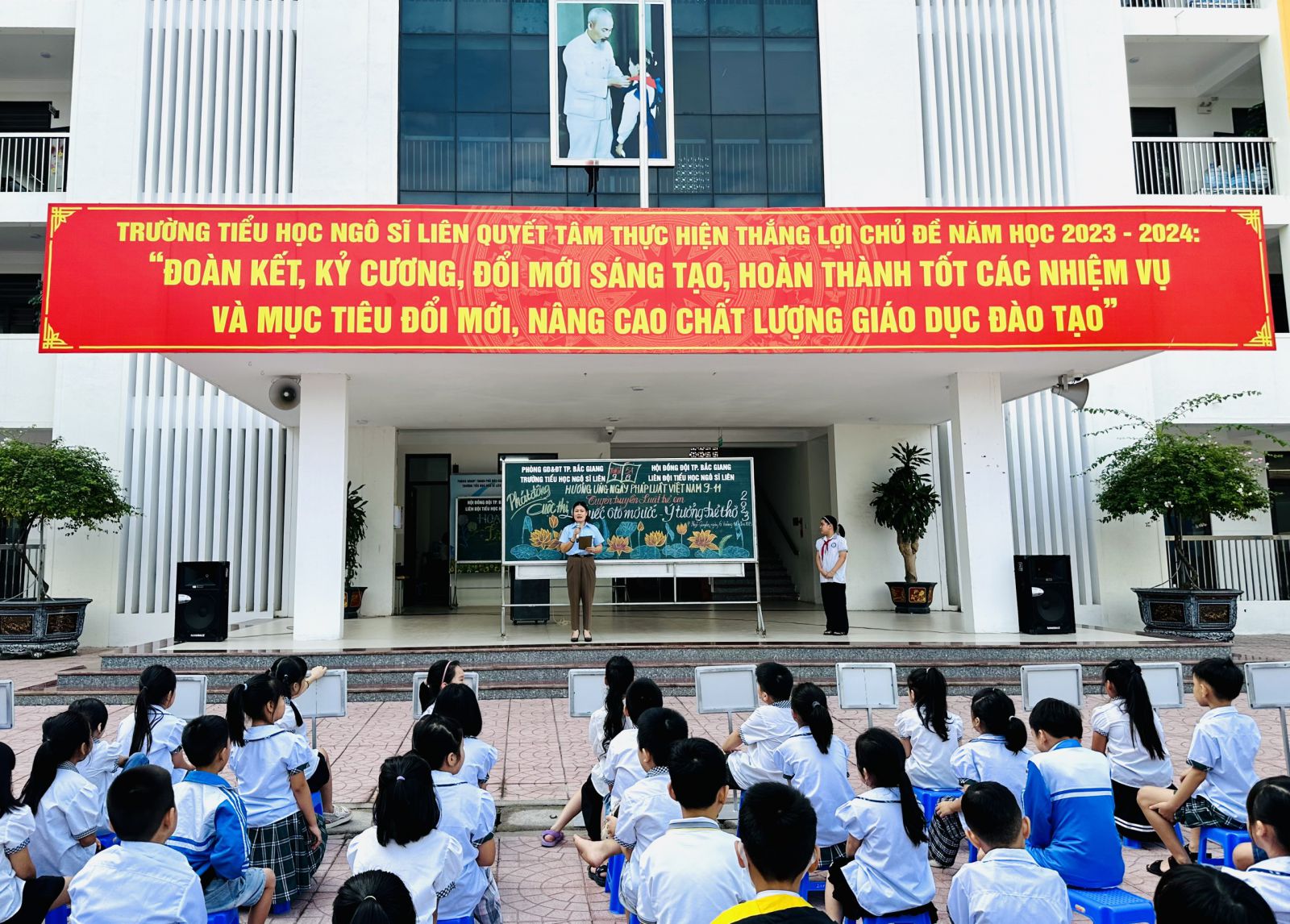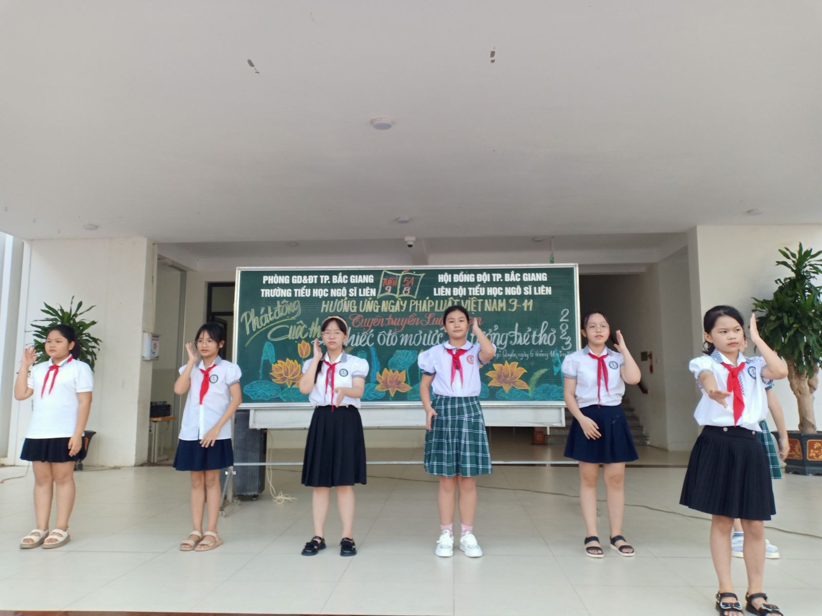 Sáng 6/11/2023, trong tiết SHDC tuần 9, Liên đội Trường Tiểu học Ngô Sĩ Liên tổ chức Tuyên truyền Luật trẻ em và hoạt động hưởng ứng ngày Pháp luật Việt Nam 9/11 nhằm tôn vinh Hiến pháp, pháp luật, giáo dục ý thức thượng tôn pháp luật cho mọi người, đồng thời, tăng cường nhận thức của mọi người về vai trò của luật pháp trong đời sống.