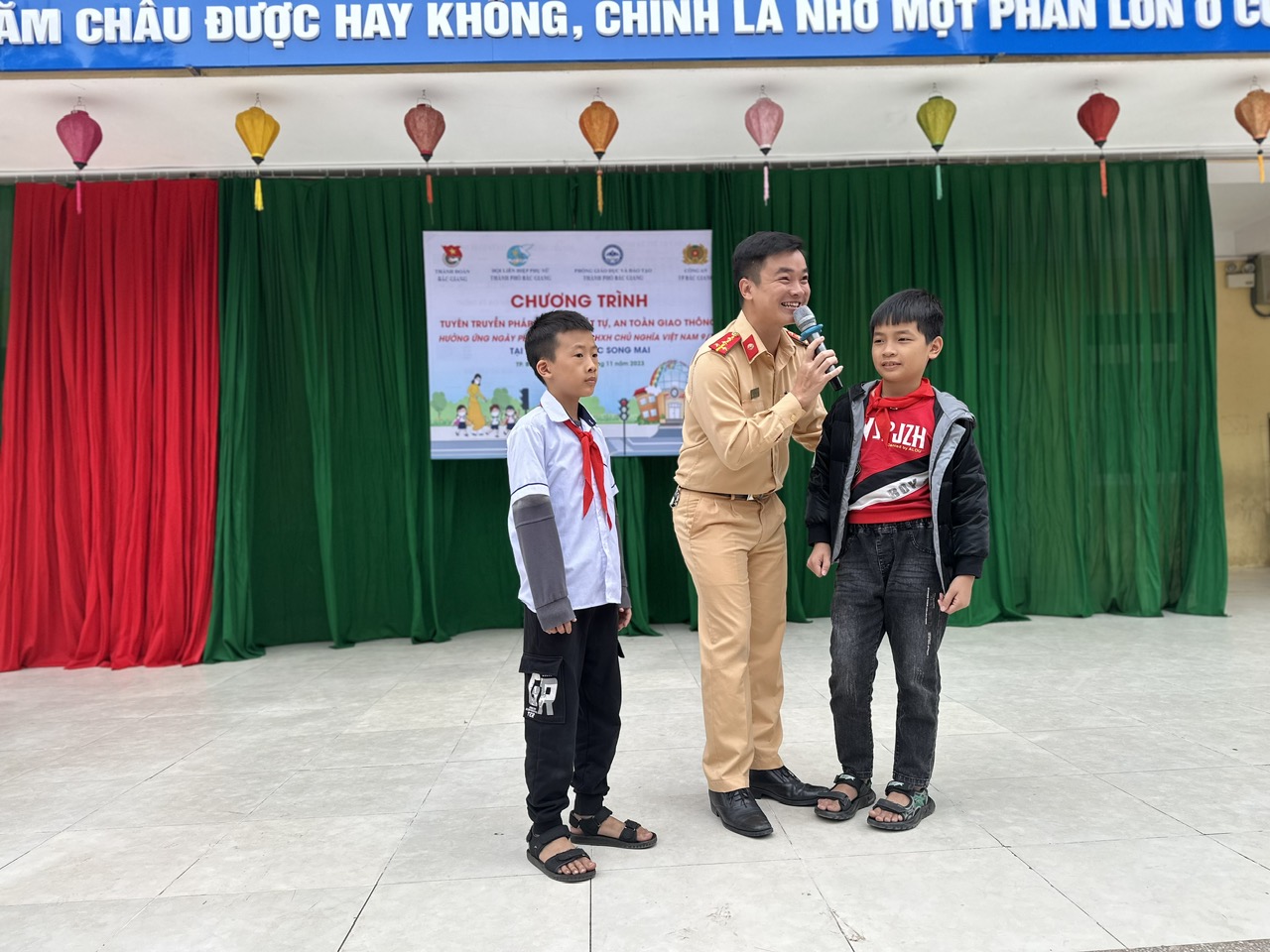 Trong buổi tuyên truyền, các em học sinh đã được nghe cán bộ Đội CSGT - Công an TP Bắc Giang tuyên truyền những quy định về Luật ATGT đường bộ. Với cách truyền đạt nhẹ nhàng, gần gũi, các em đã rất chăm chú lắng nghe và mạnh dạn lên chia sẻ những hiểu biết của mình về thực hiện Luật ATGT đường bộ khi tham gia giao thông hằng ngày.