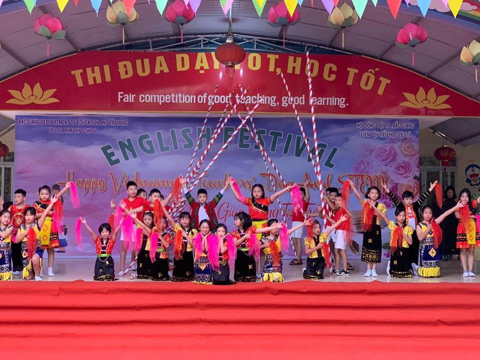 Mở đầu ngày hội là chương trình văn nghệ chào mừng với nhiều tiết mục đặc sắc, sôi động do đội văn nghệ Trường Tiểu học Lê Lợi thể hiện.