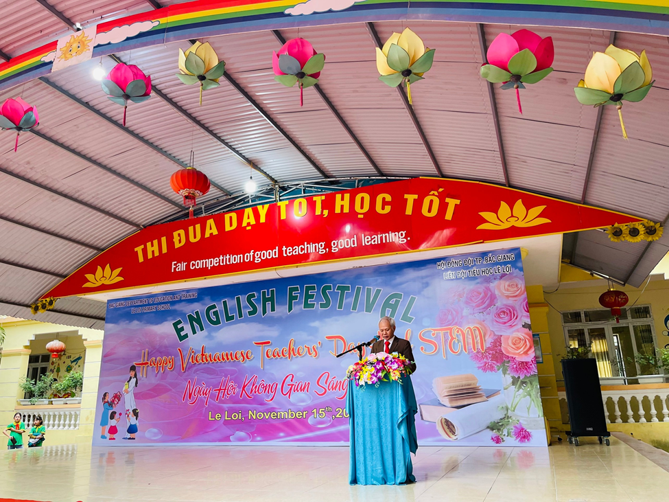 Đây là một hoạt động nhằm mục đích tăng cường việc nghe, nói tiếng Anh cho học sinh, tạo sân chơi bổ ích, khuyến khích học sinh chủ động, tích cực học ngoại ngữ; tạo cơ hội cho các em được nghe nói, trải nghiệm tiếng Anh, giúp đỡ, chia sẻ kinh nghiệm học ngoại ngữ thông qua các hoạt động giao lưu, các trò chơi tiếng Anh; tạo ra một sân chơi bổ ích để các em được giao lưu, học hỏi và thể hiện năng khiếu hội họa của mình, giúp học sinh có cơ hội được học hỏi, giao lưu, trải nghiệm thực tế, vận dụng kiến thức, kỹ năng vào thực tiễn cuộc sống, rèn luyện kỹ năng giao tiếp linh hoạt, chủ động, sáng tạo; tạo sân chơi lành mạnh, bổ ích nhằm phát triển nâng cao các tố chất, tiềm năng, sáng tạo của bản thân học sinh, nuôi dưỡng ý thức sống độc lập, biết quan tâm chia sẻ với mọi người xung quanh; tạo cơ hội trải nghiệm cho học sinh toàn trường. Về dự ngày hội cùng thầy và trò nhà trường có lãnh đạo UBND phường Lê Lợi, các thầy cô giáo của các trường và các thầy cô của Trung tâm Anh ngữ Thống Nhất.