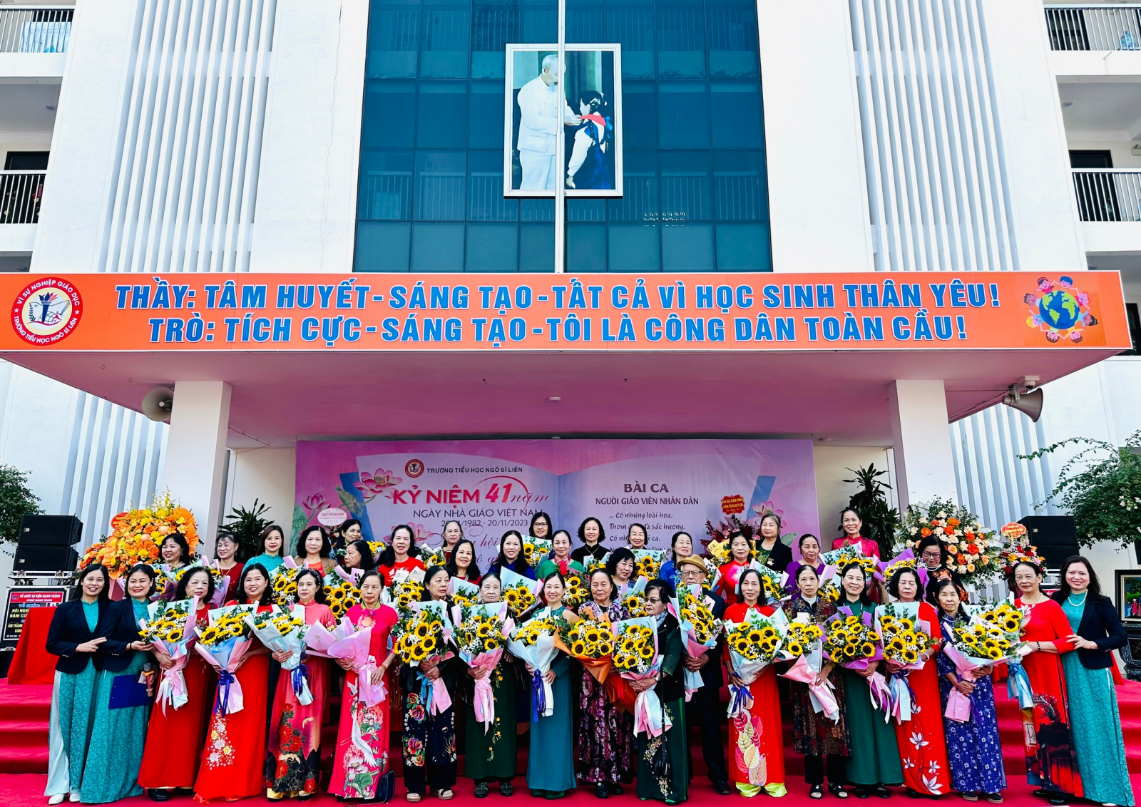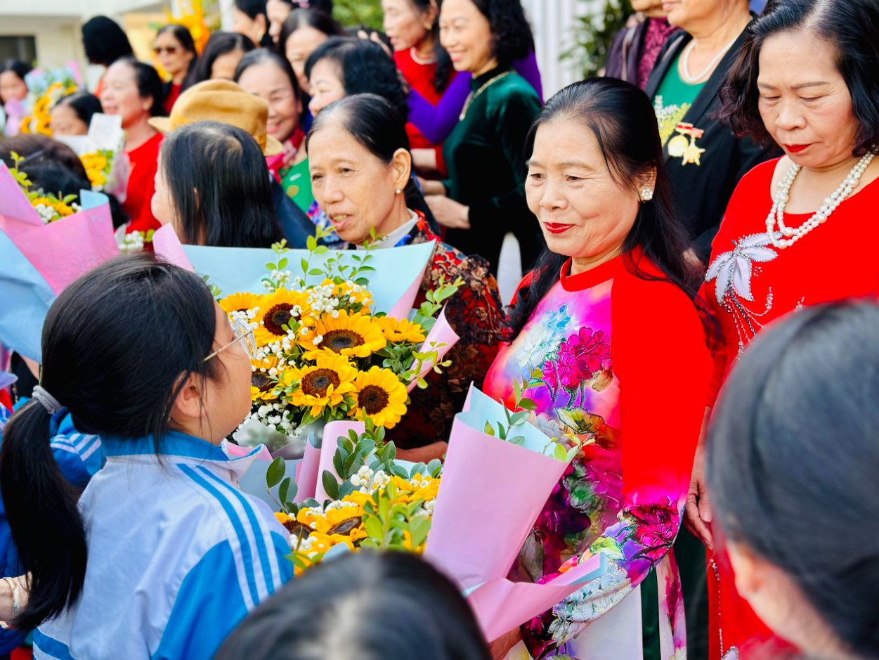 Các thầy cô giáo cựu giáo chức; cùng đông đủ tập thể sư phạm và trên 1700 học sinh Trường Tiểu học Ngô Sĩ Liên.