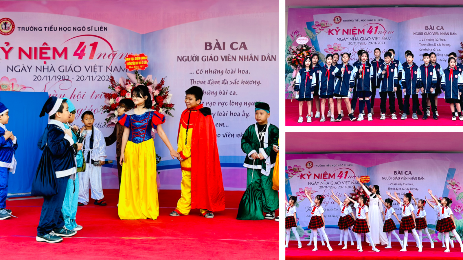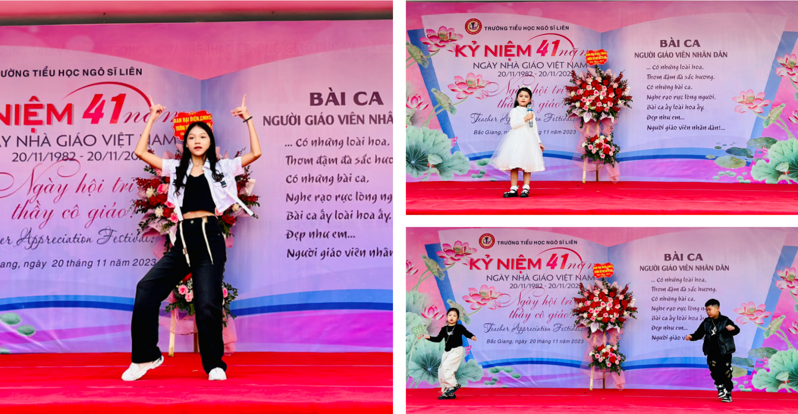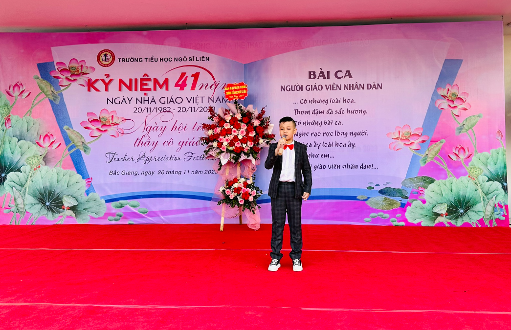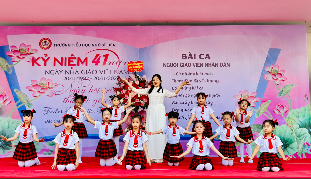 Chương trình nghệ thuật “Thay lời tri ân” chào mừng 41 năm ngày nhà giáo Việt Nam xuyên suốt bằng những tiết mục được lựa chọn trong chương trình tìm kiếm tài năng nhí của nhà trường thuộc các lĩnh vực: văn hóa, văn nghệ, thể thao, nghệ thuật, kịch, , ảo thuật, sử dụng ngoại ngữ ..v…v..