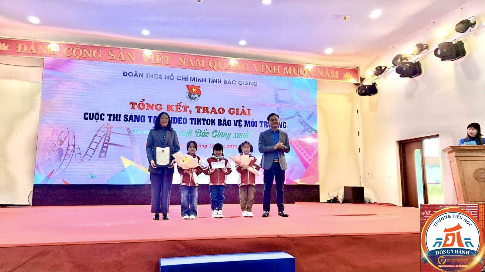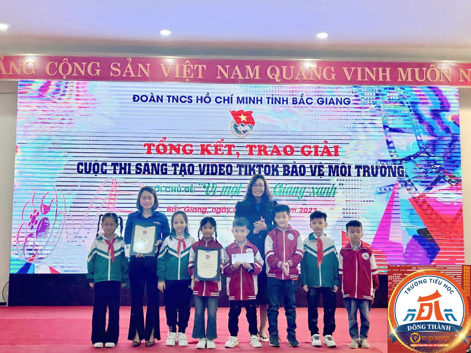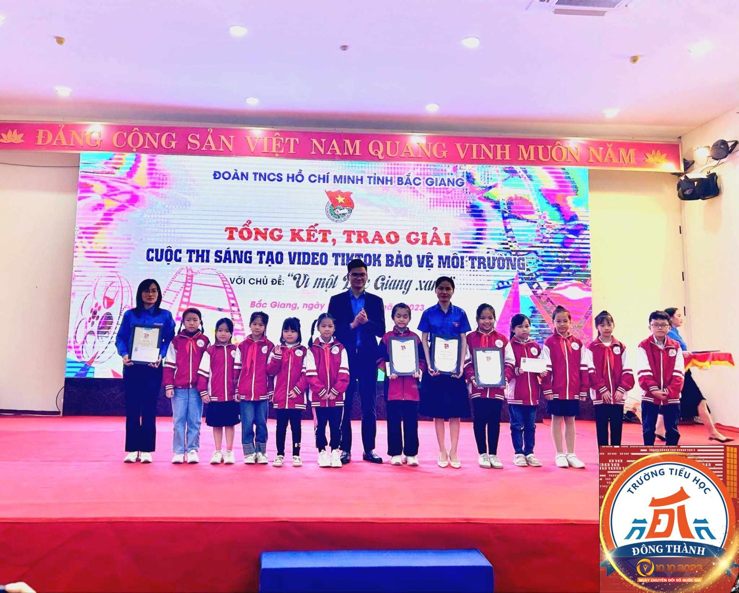 Cùng với các tổ chức Đoàn, Hội, Đội trên địa bàn toàn tỉnh, Liên đội Trường Tiểu học Đông Thành có tổng số 61 Video clip dự thi. Kết quả đạt 5/12 giải thưởng Cuộc thi sáng tạo nội dung video clip TikTok bảo vệ môi trường với chủ đề “Vì một Bắc Giang xanh” năm 2023, và là Liên đội Trường Tiểu học duy nhất trong khối các Trường Tiểu học trên địa bàn tỉnh đạt giải, trong đó có 1 giải A, 1 giải B, 2 giải C và 1 giải sản phẩm lan tỏa.