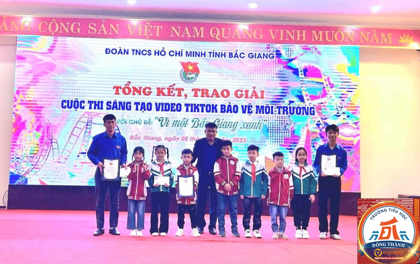 Cuộc thi sáng tạo nội dung video clip TikTok bảo vệ môi trường với chủ đề “Vì một Bắc Giang xanh” năm 2023, do tỉnh Đoàn Bắc Giang triển khai được các em đội viên, thiếu niên nhi đồng, Liên đội Trường Tiểu học Đông Thành hưởng ứng và tích cực tham gia.